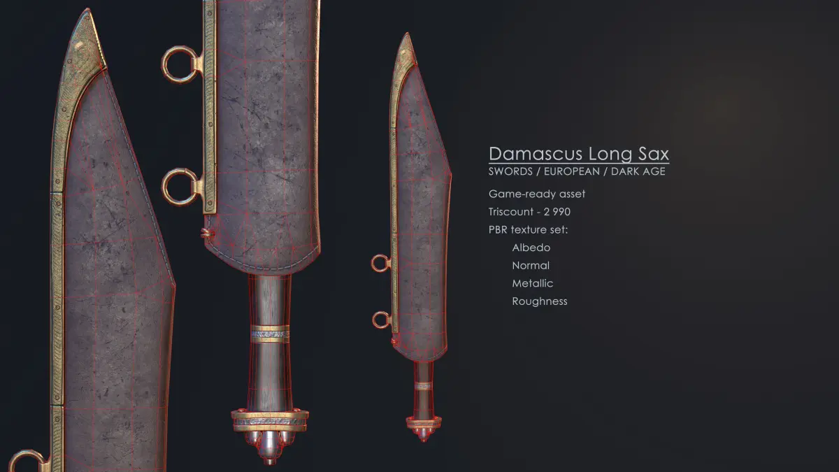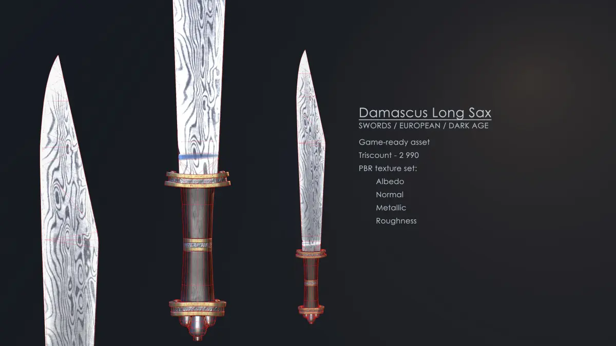 The Damascus Long Sax is a stunning and intricately designed 3D game model that brings the history of ancient weaponry to life. This high-quality model features a beautifully crafted Damascus steel blade, an intricately designed handle, and a leather scabbard.