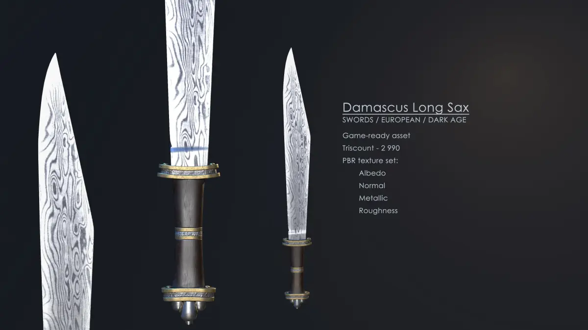Whether you're looking to add a stunning piece to your collection or need a high-quality asset for your next game, the Damascus Long Sax is a perfect choice.