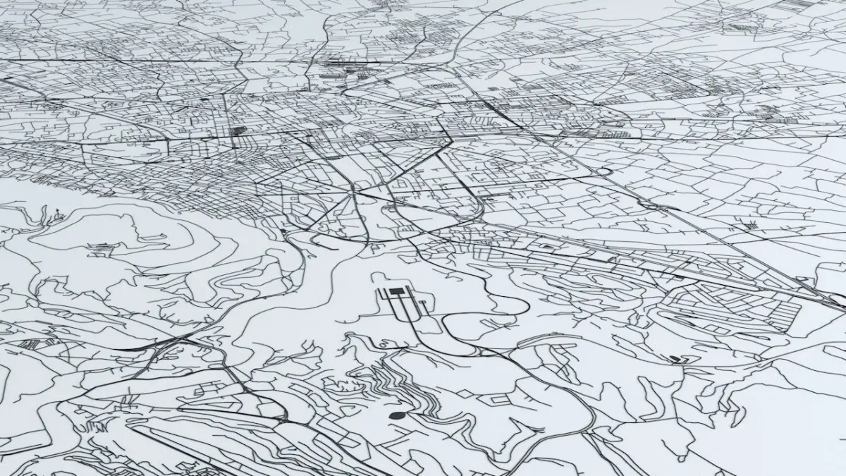 - the model is positioned on a flat surface (road network is on the “floor” - no elevation data included)