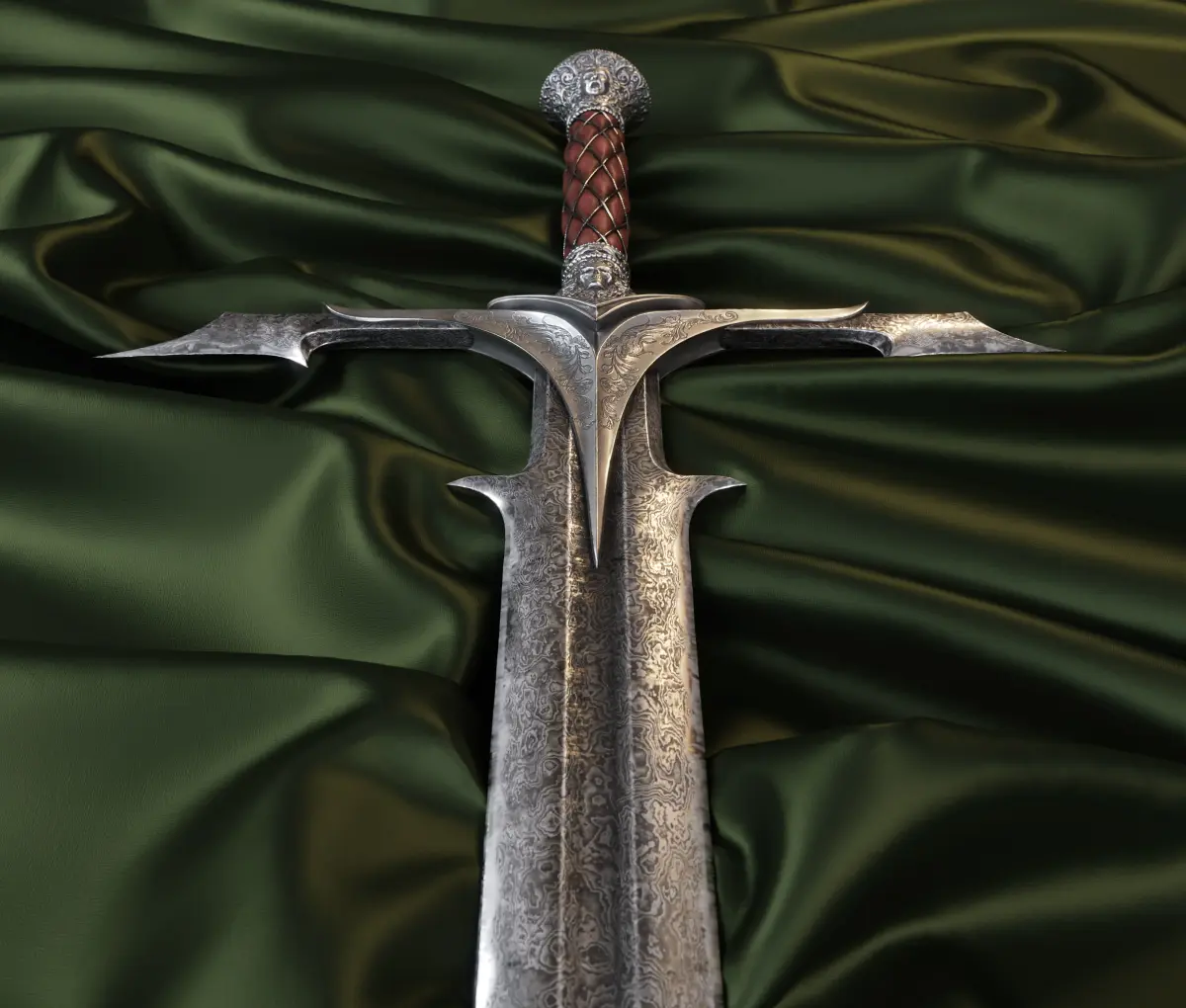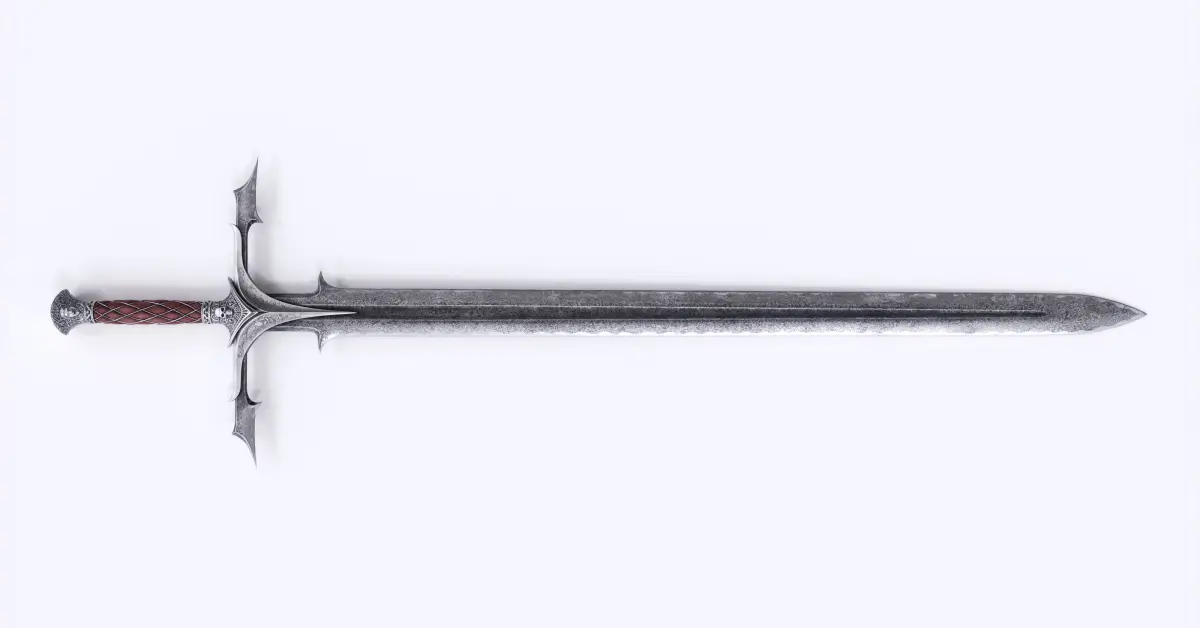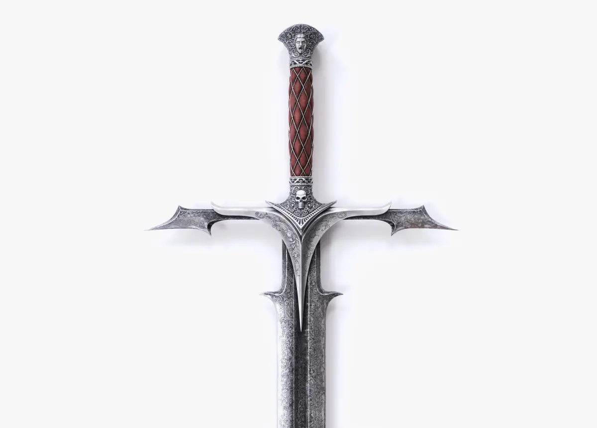 Detailed 3d model of a quality handmade Damascus two-handed sword.