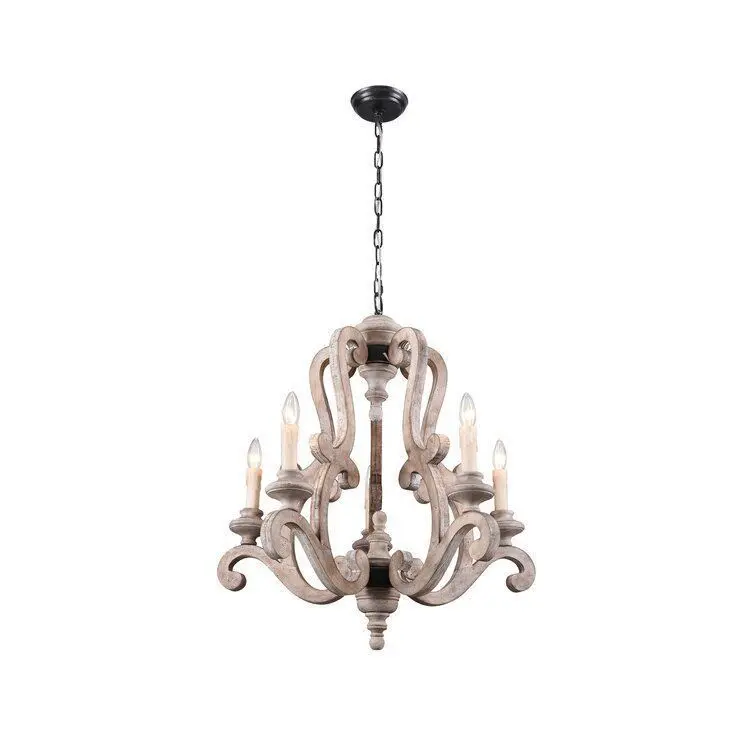 - Capturing attention in a way other fixtures can’t, chandeliers make a statement in any interior design without stealing valuable floor space. Take this eye-catching piece for example: Suspended by a bronze chain finish, its frame showcases scrolled woodwork with a purposefully distressed finish, offering an antiqued feel to your space