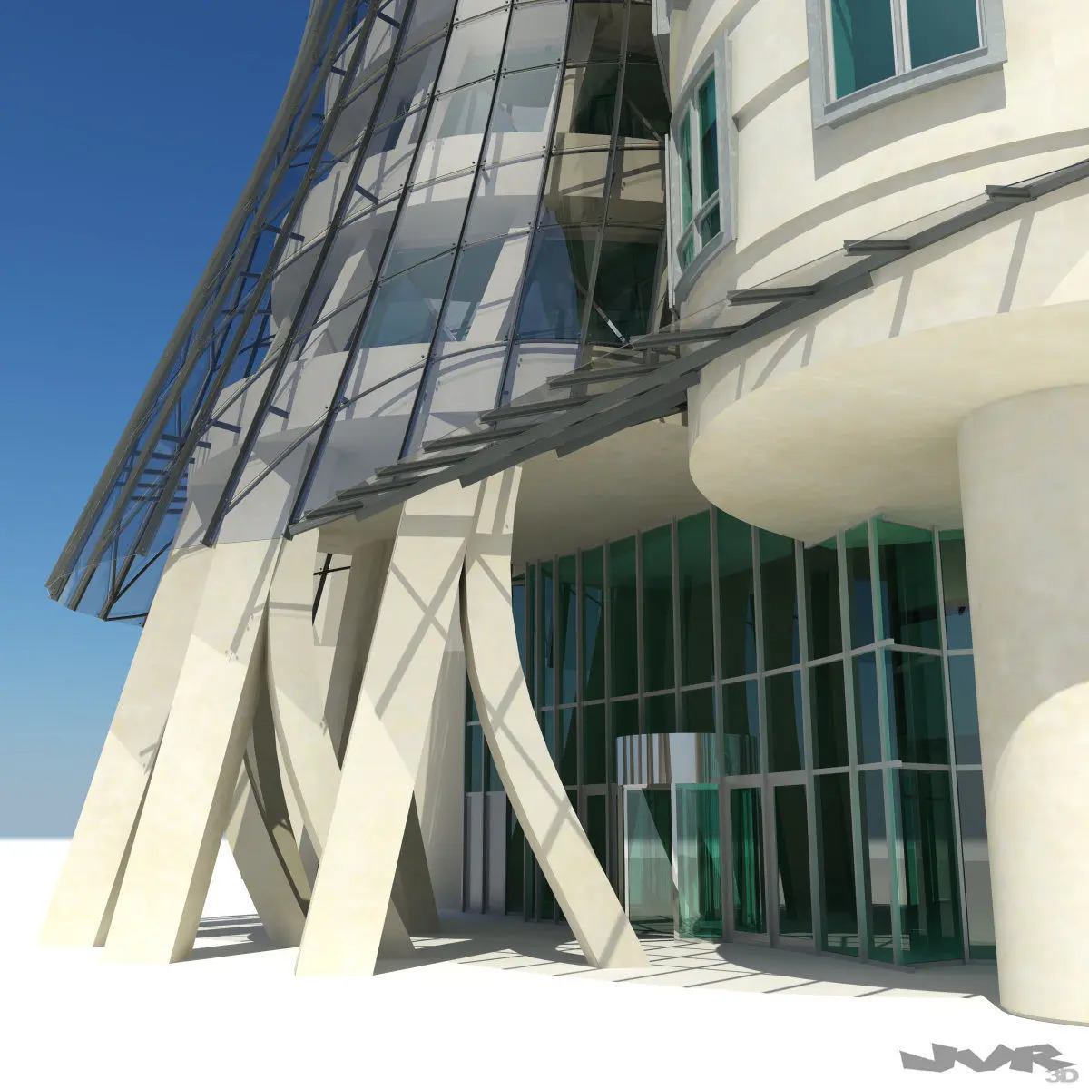 Detailed model of Dancing House at prage, designed by Frank Gehry and Vlado Milunic.