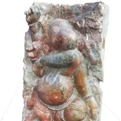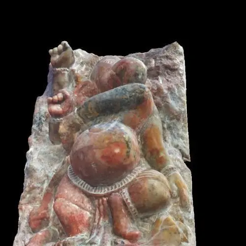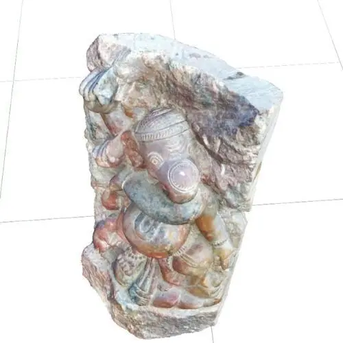 Introducing the stunning 3D model of the beloved Vinayaka, Ganesha, or Ganapati - a popular Hindu god known for his association with wisdom, intellect, and new beginnings. This 30cm tall and 8cm wide statue is intricately molded from a granite stone, featuring a raw and rough texture on one side and a dancing Ganesha on the other.