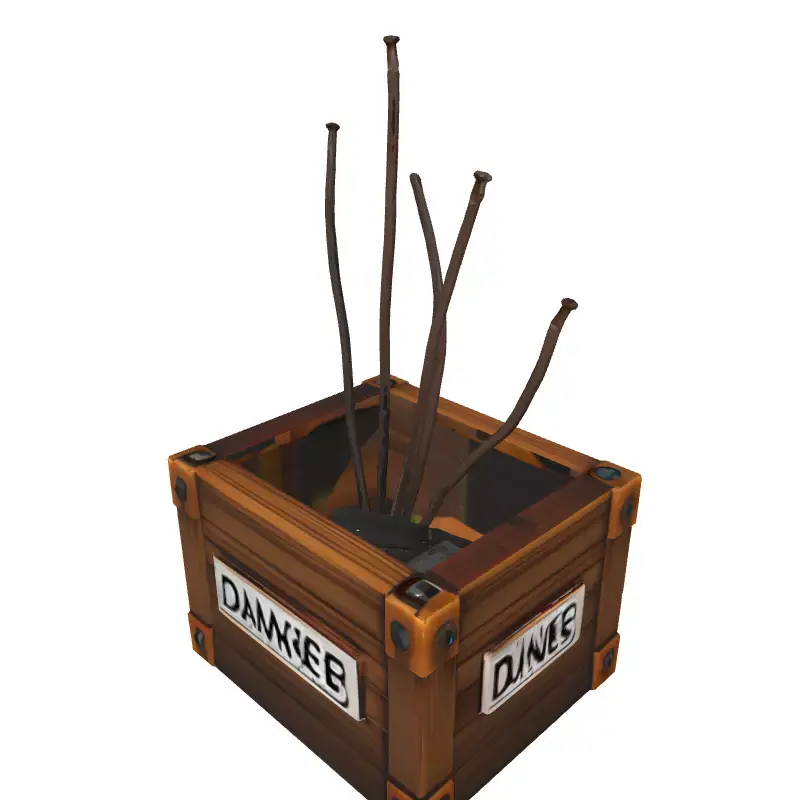 This highly detailed 3D model presents a rugged wooden crate containing a mysterious electronic device. Coiled cables and multiple thin wires protrude from the top, hinting at a complex and potentially hazardous mechanism. A prominent 'DANGER' sign on the side reinforces its critical and precarious nature. This versatile prop is perfectly suited for a wide array of digital projects, including immersive game development (e.g., action, adventure, horror, or survival genres), cinematic film and animation productions, engaging virtual reality (VR) and augmented reality (AR) experiences, or as a focal point in digital art compositions. It is also well-suited for high-quality static renderings in industrial or post-apocalyptic scenes. The model features clean topology and is optimized for real-time applications, ensuring smooth performance in game engines while maintaining visual fidelity. It comes complete with PBR textures (Base Color/Albedo, Normal, Roughness, Metalness) for realistic material representation and is fully UV unwrapped for easy customization. Supported file formats include GLB, OBJ, STL, ABC, DAE, FBX, USD, and PLY, ensuring broad compatibility across various 3D software and platforms.