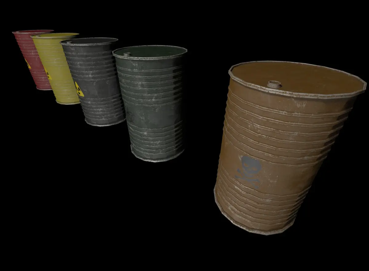Realistic Low-poly models set of fire danger oil barrels with high quality PBR textures (4096x4096). Rendering in V-ray.