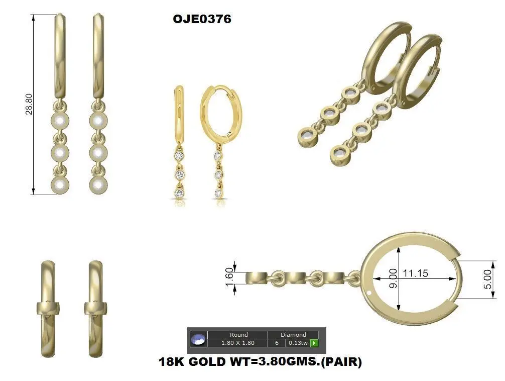 Dangle Earrings Gold Earrings Pear Earrings Bridal Earrings 3D print model