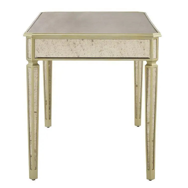 - Whether tackling taxes or working on your next big novel, this writing desk is here to help. Crafted from poplar and manufactured wood, it showcases a pull-out keyboard tray, allowing you to save some space on its tabletop to display some favourite well-thumbed novels or photographs. It features a mirrored finish with antique golden trim, creating instant glam appeal in your space while also giving your work area a subtle shine.