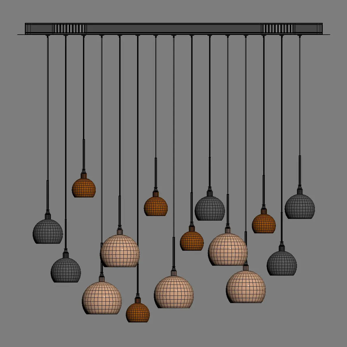 This is a realistic model of the Dar AUR6264 Aurelia 15 Light Bar Pendant