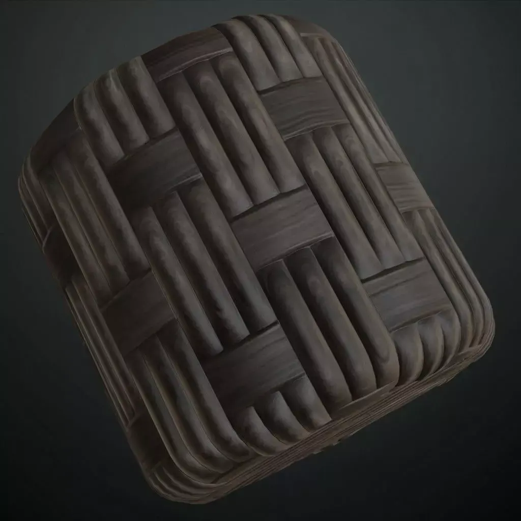 This is a PBR Texture Pack of Dark Brown Basketweave Wood.