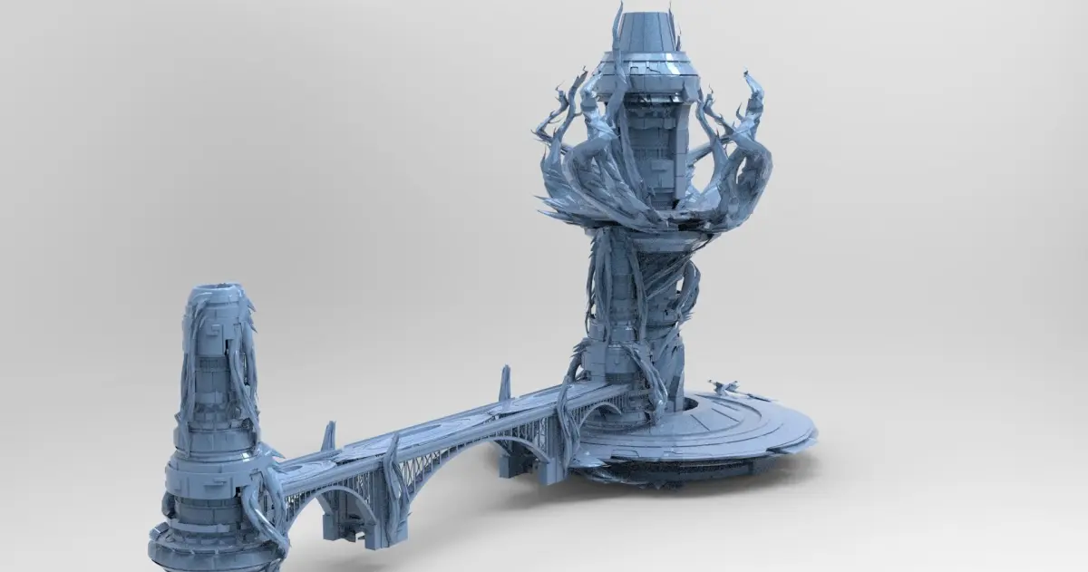 Dark Cthulhu Watchtower Bridgeways Low-poly 3D model
