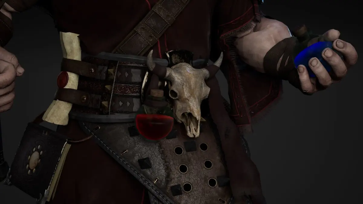 - Extra bones: Bag; Potion; Front_Lether; Front_Lether_1; Front_Lether_2; Front_Lether_3; Front_Lether_4; Front_Lether_5; Eyelid_l; Eyelid_r; Eye_l; Eye_r; Book;
