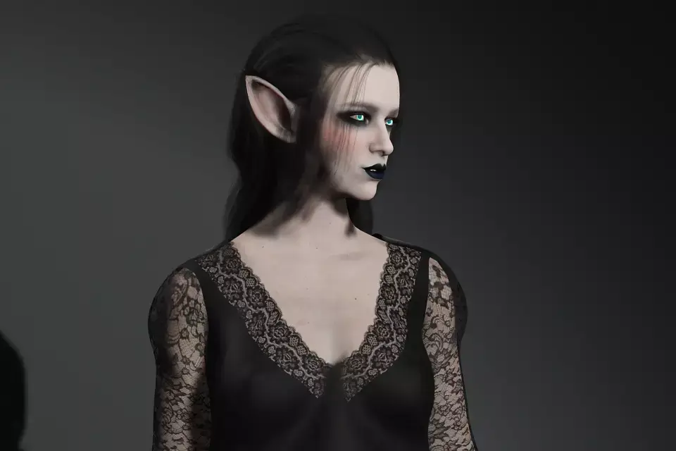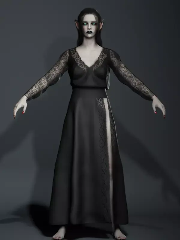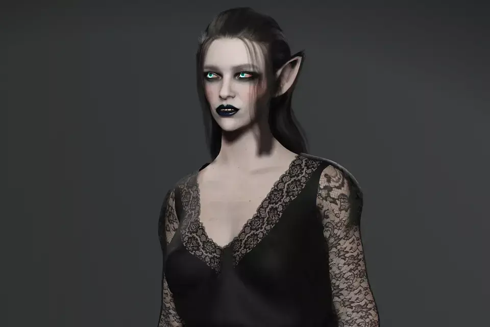 Born in the depths of shadowed realms, her glowing eyes reveal the arcane power of the dark elves. Draped in black lace, she walks with both elegance and menace, a sorceress of forgotten magic.The Dark Elf Sorceress is a highly detailed fantasy 3D character designed for dark fantasy RPGs, cinematic trailers, and supernatural storytelling. With her pale skin, glowing turquoise eyes, and pointed elven ears, she perfectly embodies the mystique and power of the drow (dark elves).