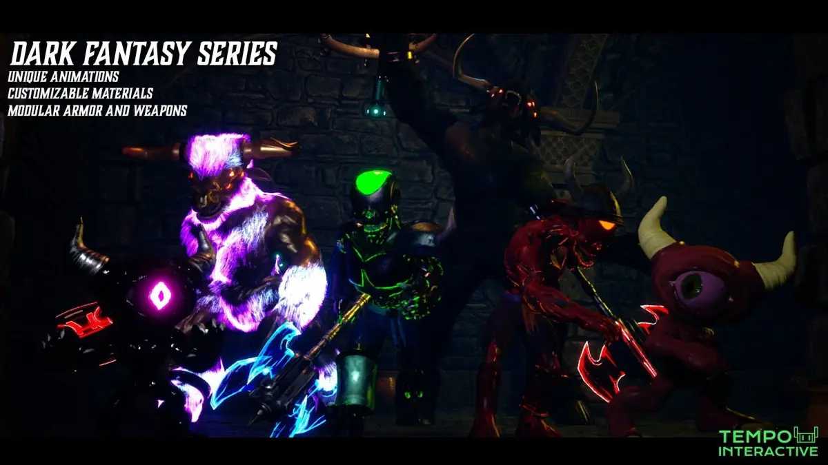 Your very own customizable Dark Army of Demonic servants!Endlessly customize with armor, and materials to create your own Unique MonstersDeep within the dark labyrinth, The Minotaur emerges from its abyssal prison. It's axe brandish for war!Fully Customizable materials and unique animations created specifically for this beast!34 AnimationsBracer Accessory Heavy Metal Style Weapon(Includes sockets for easy attachment of assets!)Includes 34 Preset Materials for you to endlessly customize!Includes Hair Grooms and Hair Skin Binding (DISCLAIMER - Hair Grooms requires Support Compute Skin Cache and Groom Plugin to be enabled to be used in Projects)