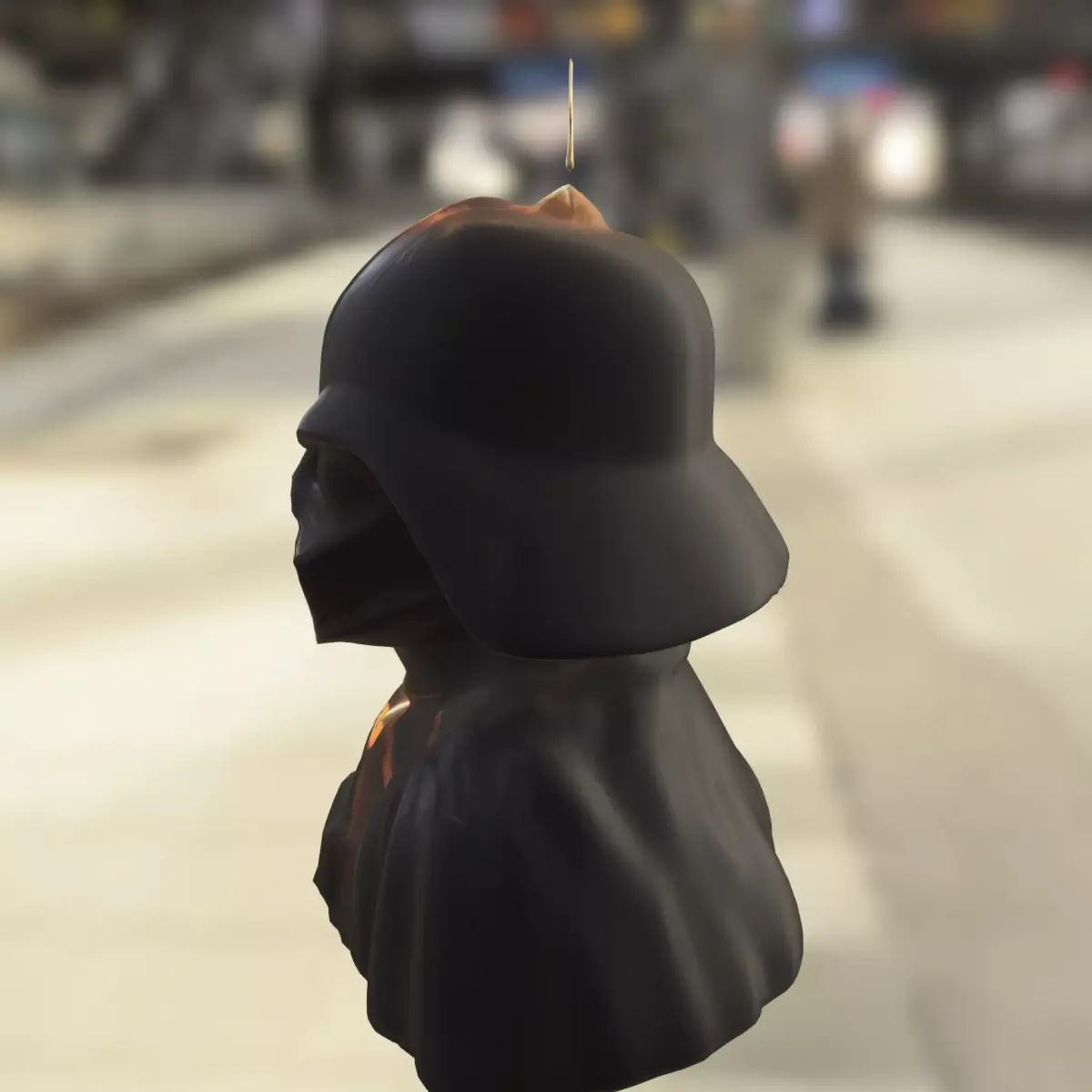 A highly detailed 3D model of a dark sci-fi inspired bust with candle integration, designed with a menacing armored helmet and iconic chest design. Perfect for use in sci-fi, fantasy, and adventure games such as Star Wars-inspired mods, Mass Effect, Cyberpunk 2077, Skyrim, and other RPG or survival projects. This model can serve as a decorative prop, collectible, or environment detail within Unity and Unreal Engine. It is also optimized for 3D printing, making it suitable as a unique collectible, candle holder, or display figure. Available in OBJ, FBX, STL, DAE, PLY, GLB, and Blender formats.