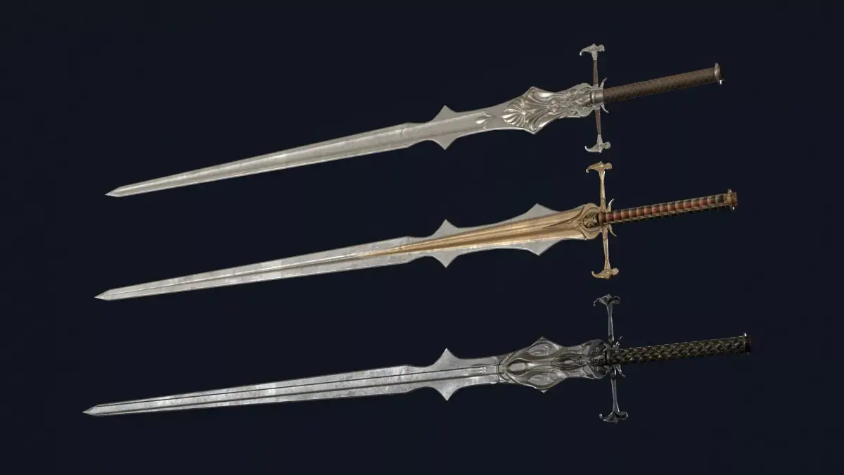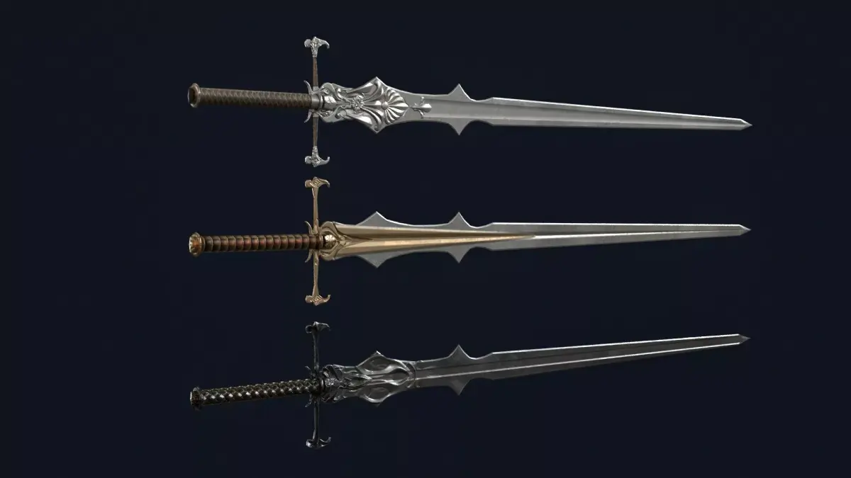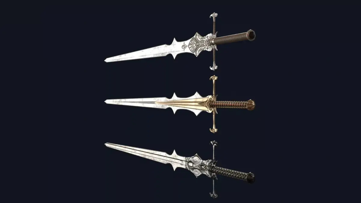 The design features a long, sharp blade with an aggressive profile and a demonic crossguard with curved spikes, creating a striking and recognizable silhouette. Its proportions emphasize reach and dominance, making it perfect for final bosses, elite enemies, and legendary characters.