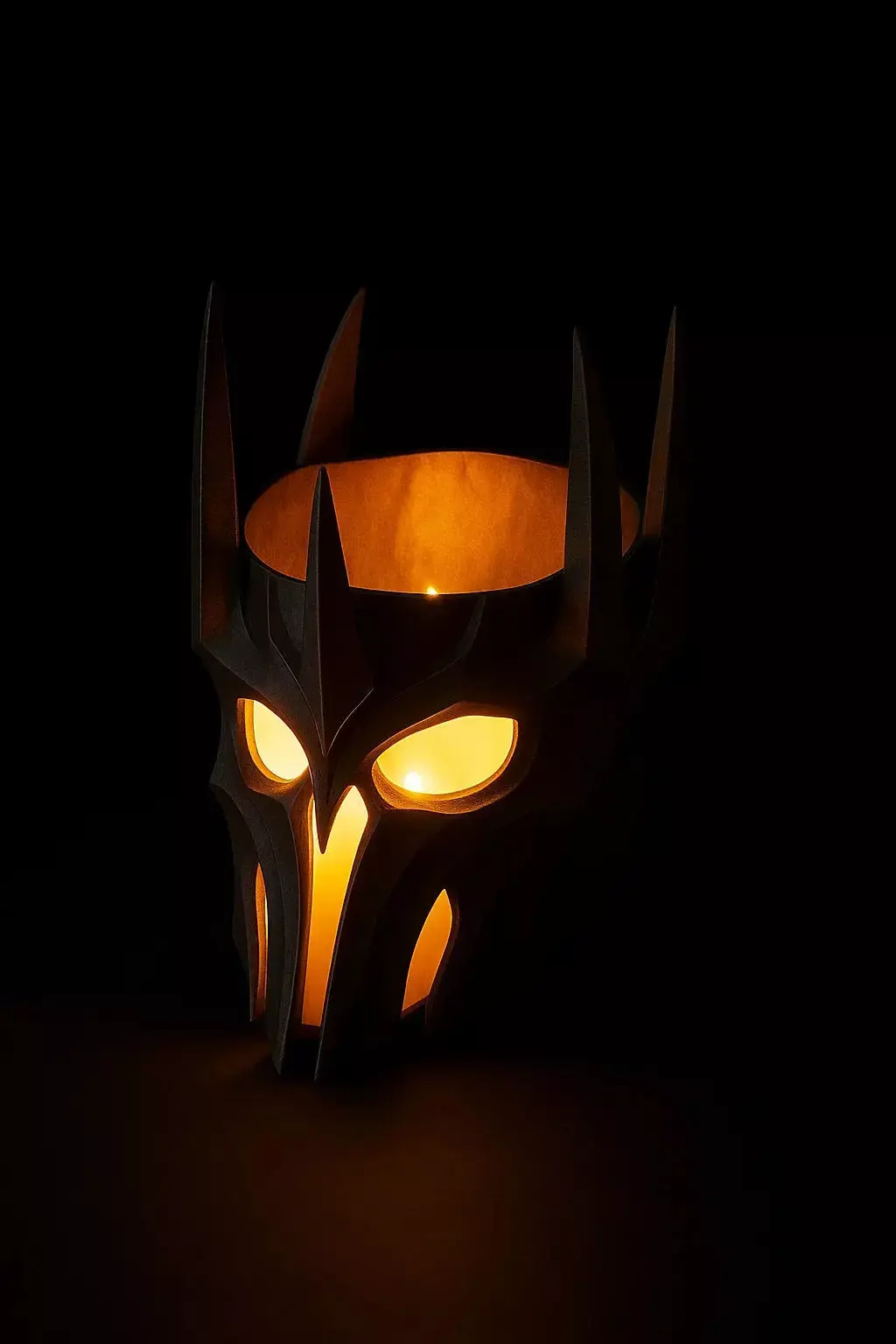 Design ConceptThe Dark Lord's Helmet candle holder is inspired by the iconic dark fantasy aesthetics, serving as both a decorative piece and a functional candle holder. Its imposing design allows light to flicker through the cuts, creating an enchanting ambiance.