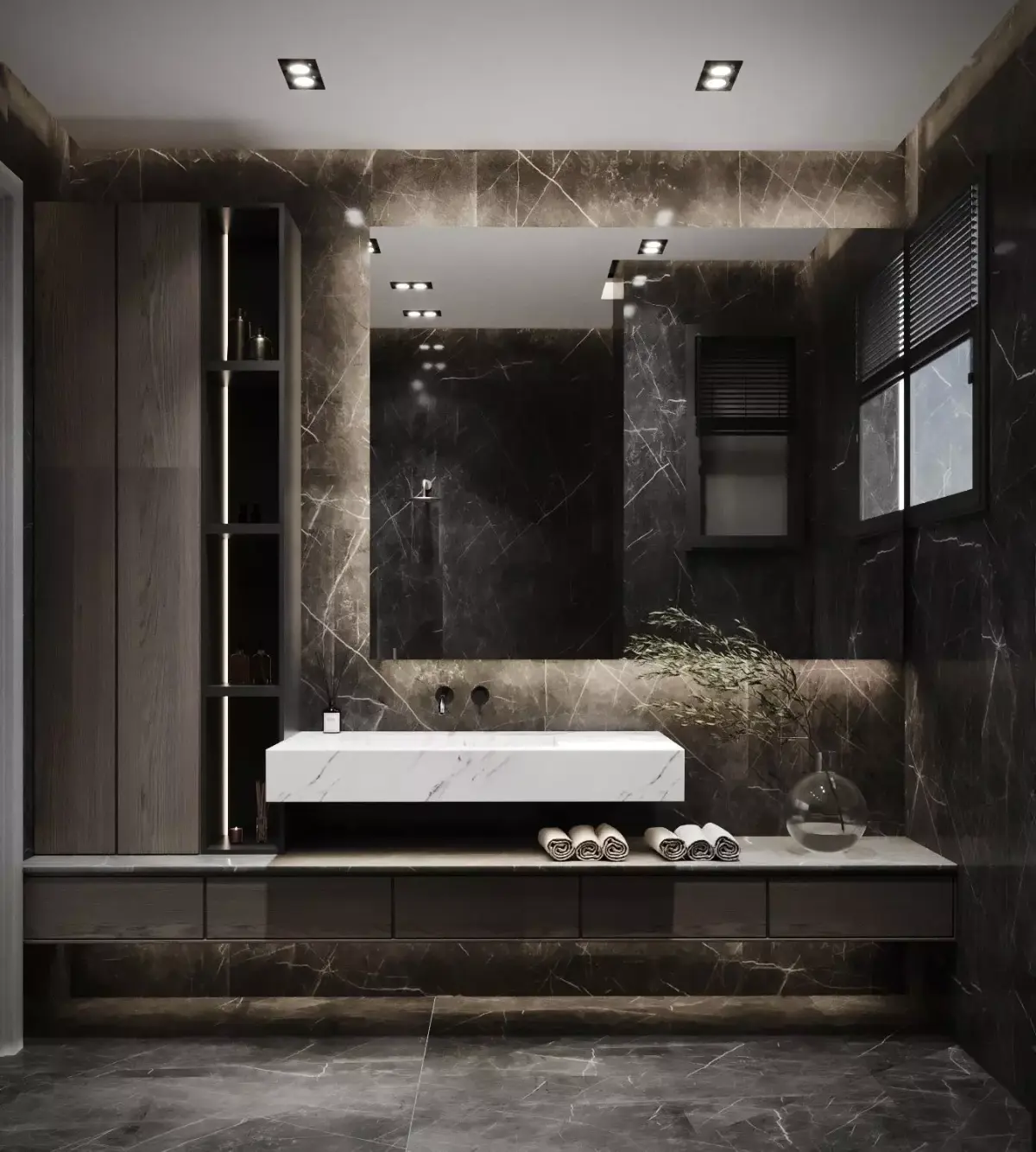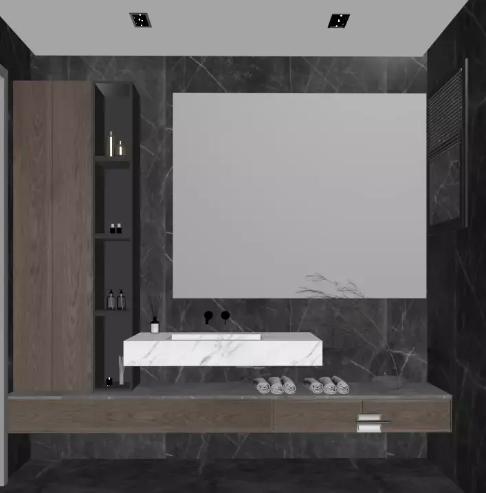 Experience a high-end dark luxury bathroom designed with stunning black marble, soft indirect lighting, and a perfectly balanced minimalist aesthetic.The scene is carefully modeled and textured with professional quality, making it ideal for interior visualization, product rendering, or architectural projects.All models, materials, and lighting are fully editable, allowing any designer to reuse the assets in their own projects or customize the space to fit different concepts.Ideal for CGI artists, architectural visualization studios, and 3D enthusiasts seeking a ready-to-use, premium bathroom environment.