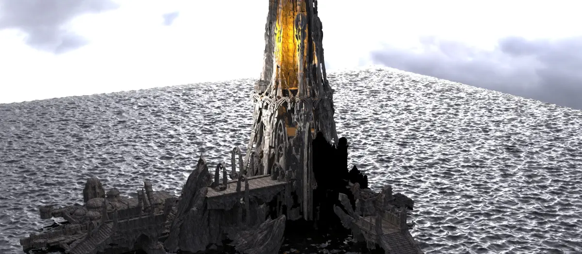 Dark Moria ore Tower 4 Tiled PBR texture provided. Centre interior not uv mapped!