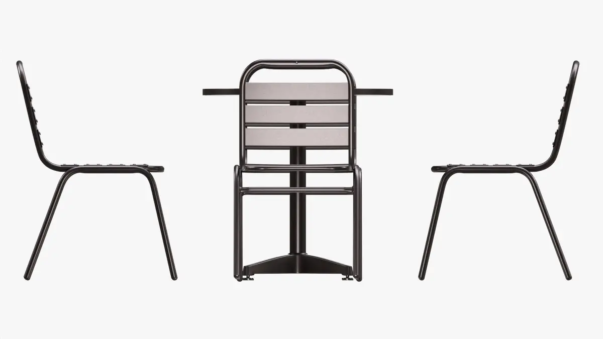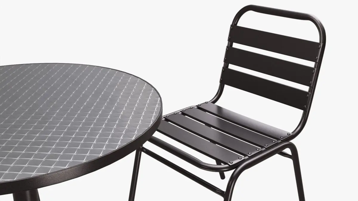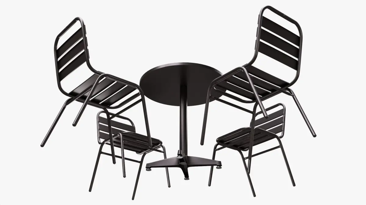 Dark Outdoor Round Dining Table with Chairs 3D model
