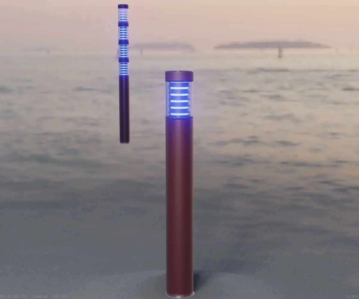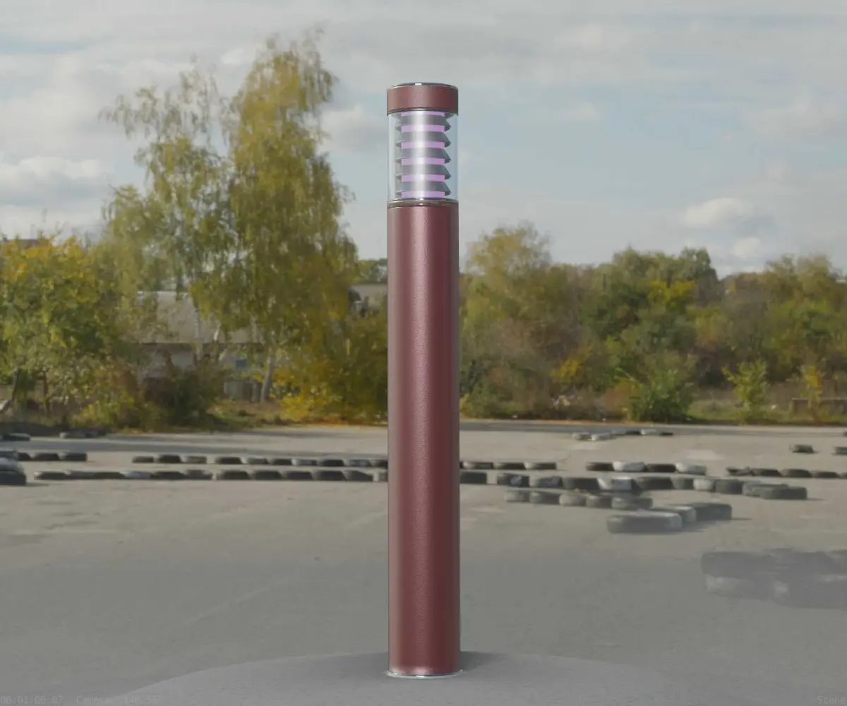 The dark red textured light column 16 out of the street light set 9.