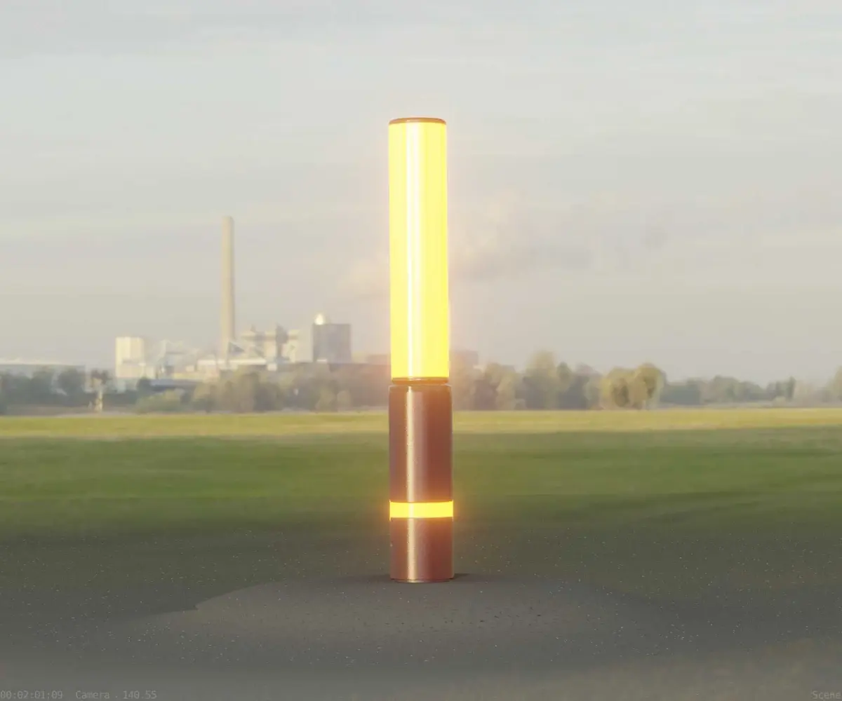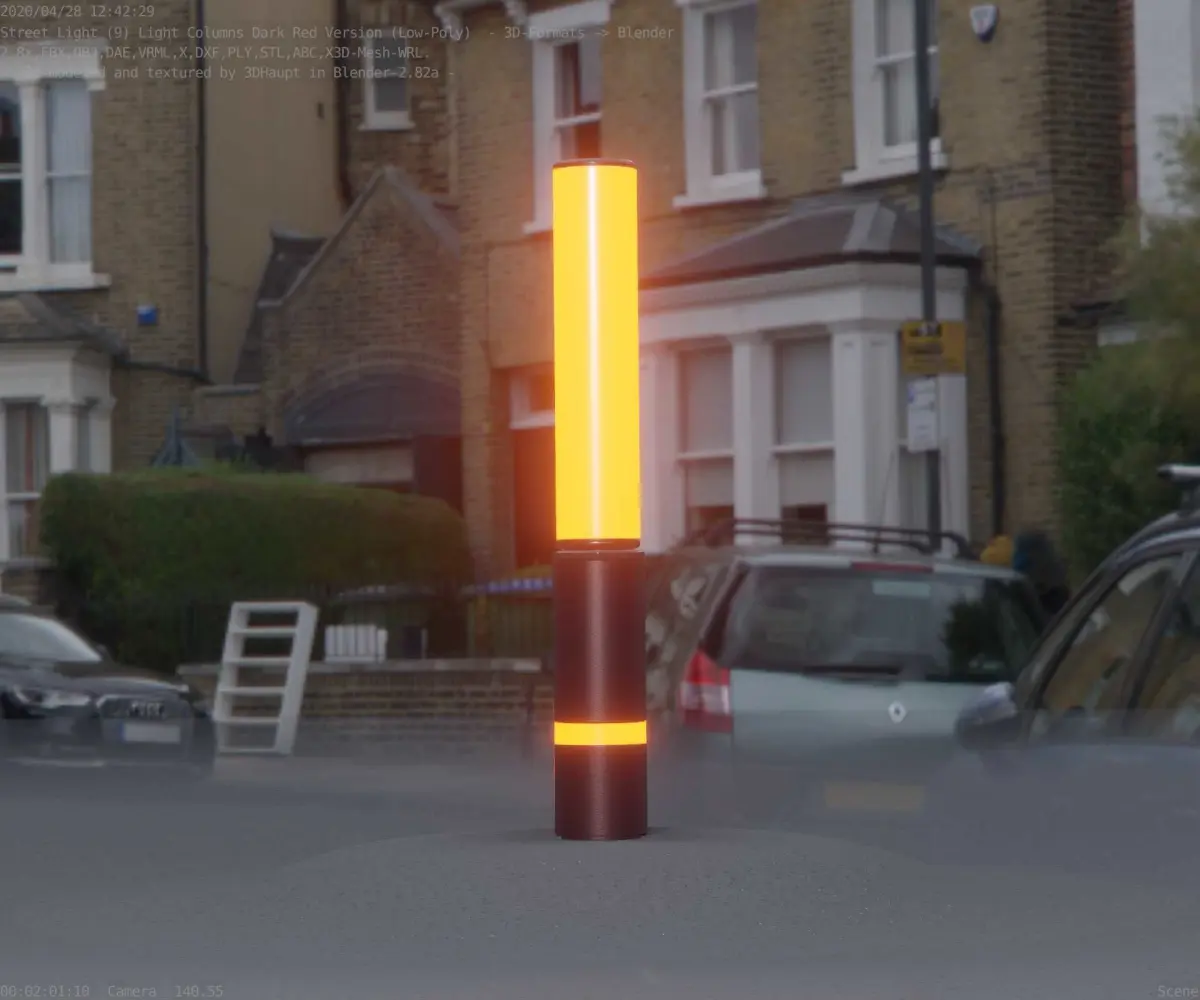 The dark red textured light column 30 out of the street light set 9.