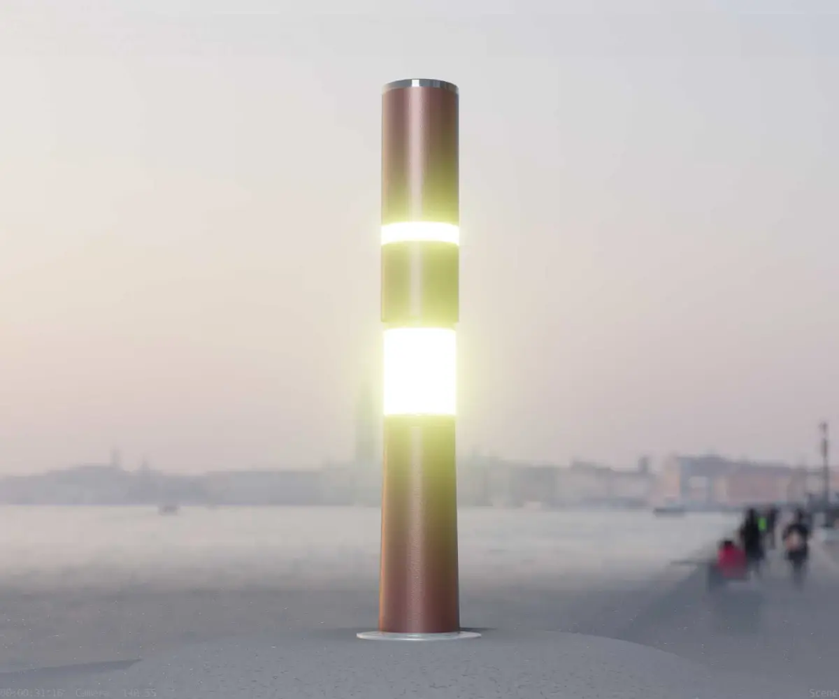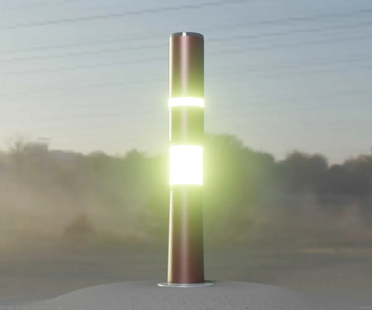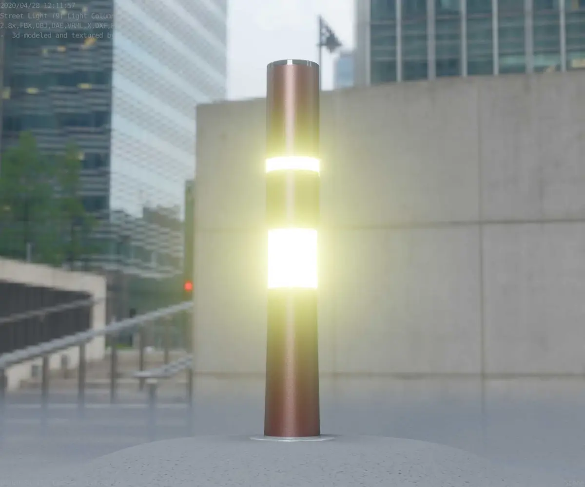 The dark red textured light column 8 out of the street light set 9.