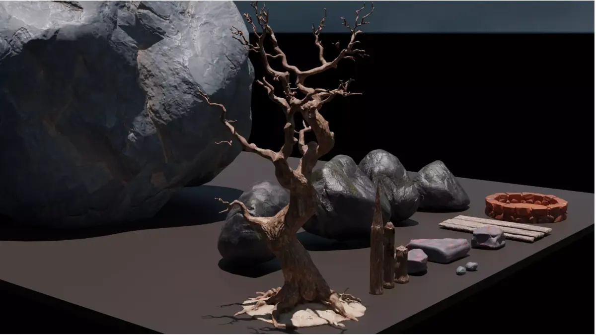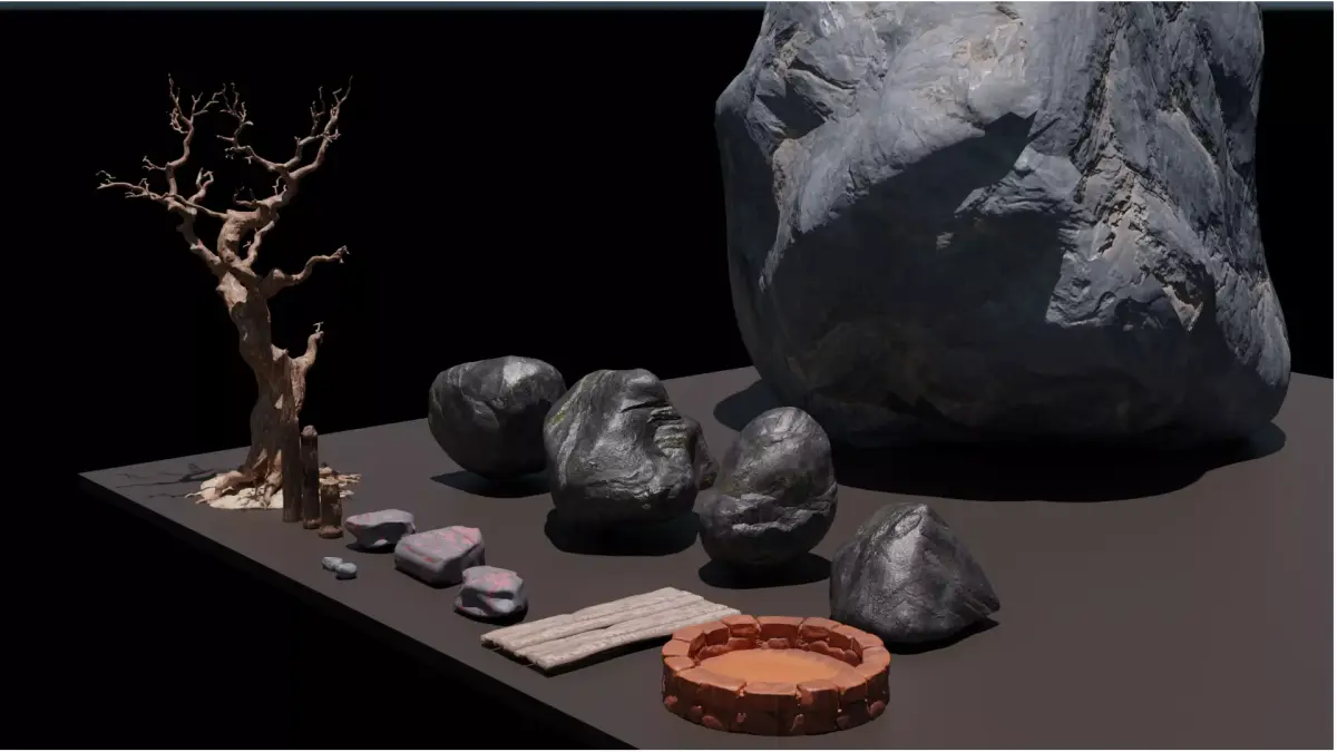 The models are optimized for real-time use and work well in engines such as Unity and Unreal Engine, as well as for offline rendering in Blender. No terrain, grass, soil, or background elements are included — only the listed props.