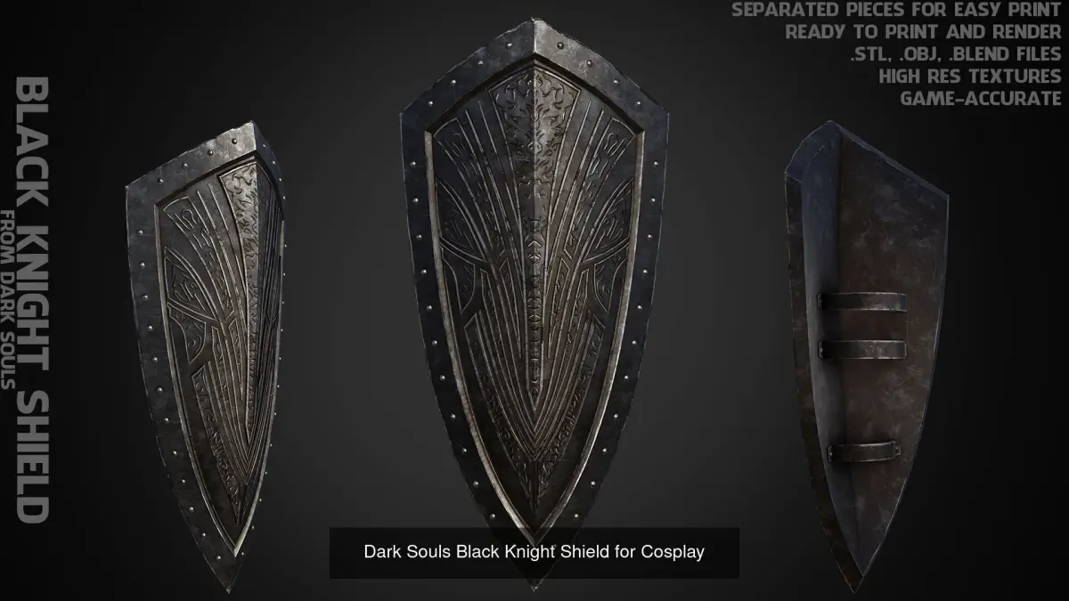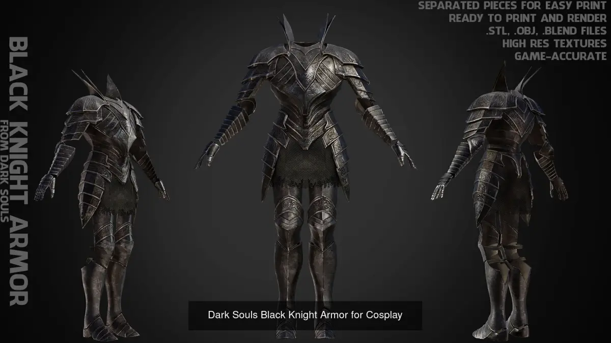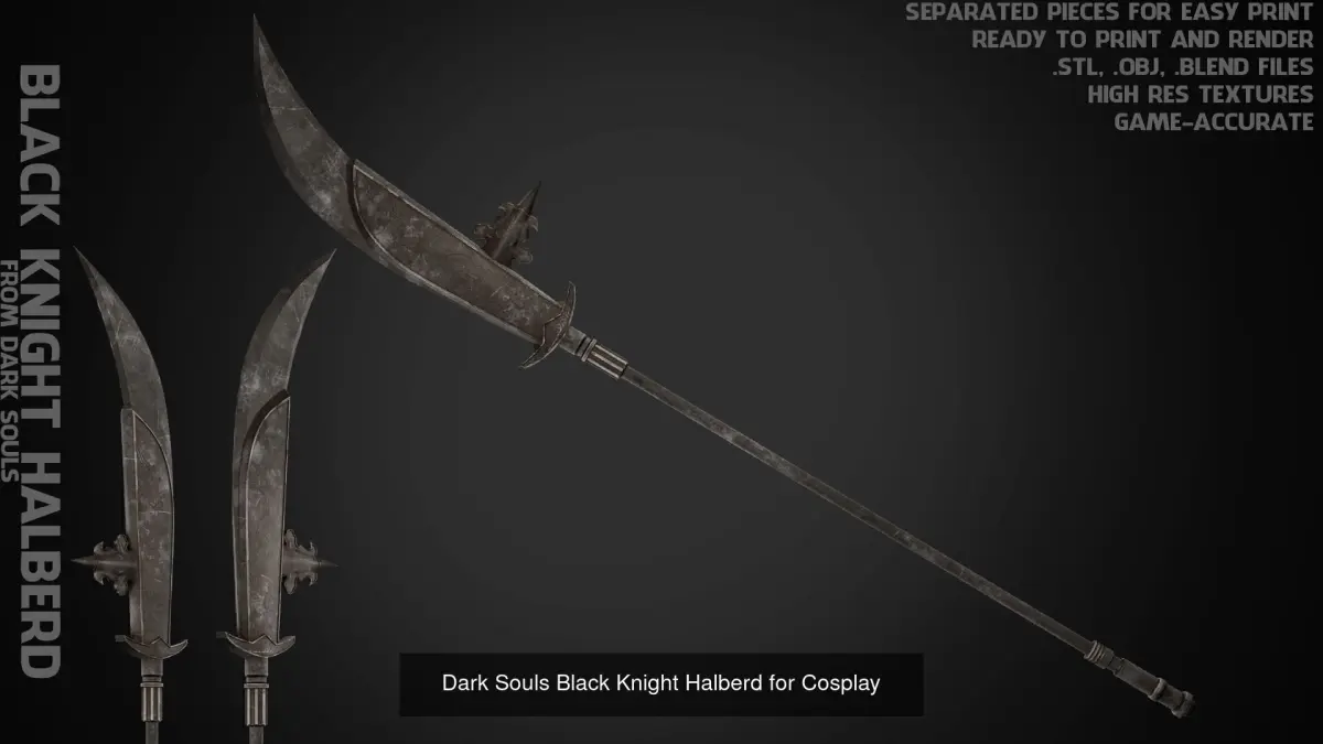 Black Knight Full Armor, Halberd and Shield from Dark Souls ready to print and render (game-accurate) real size