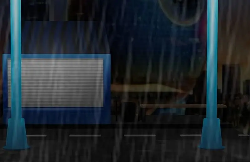 HomeCatalogdark street with a shop with fan lamps and rain 3D model