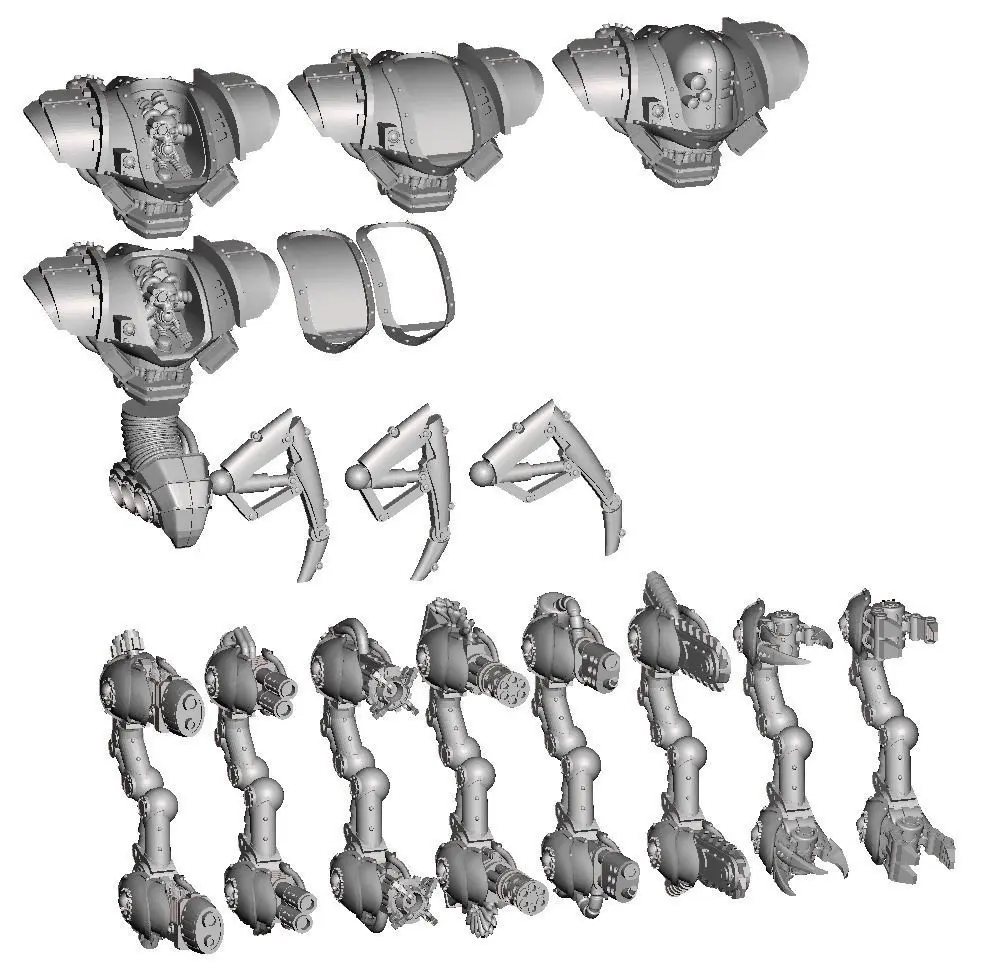 Shoulderpads are not merged with body, if you want to change them.Weapons are not merged with arm if you want to make custom versions or poses.