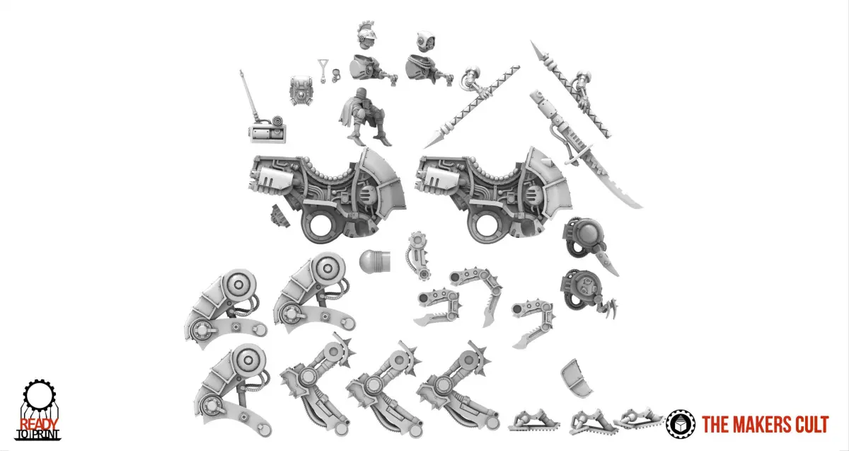 This is the base set for building the Mantis pattern mechanical Striders, fitting on 105x70mm bases