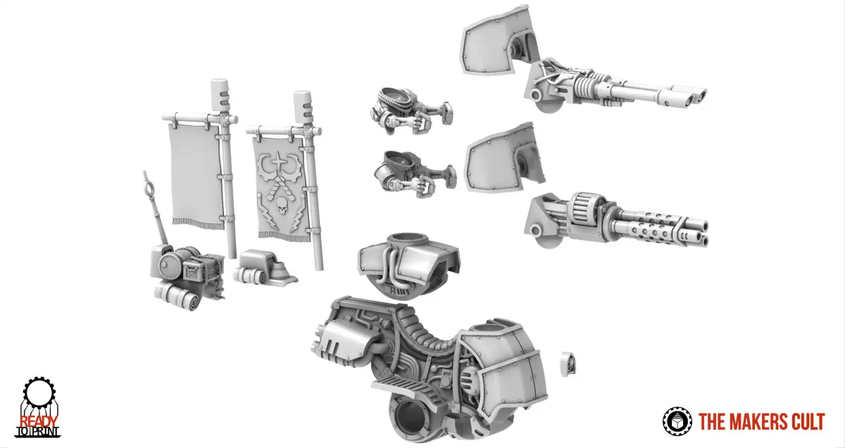 This is an upgrade set for Mantis pattern Striders for adding cannons, and an optional automata variantThe parts shown in black aren't included in this set. They can be found here :https://www.cgtrader.com/3d-print-models/miniatures/sci-fi/dark-techno-mantis-strider