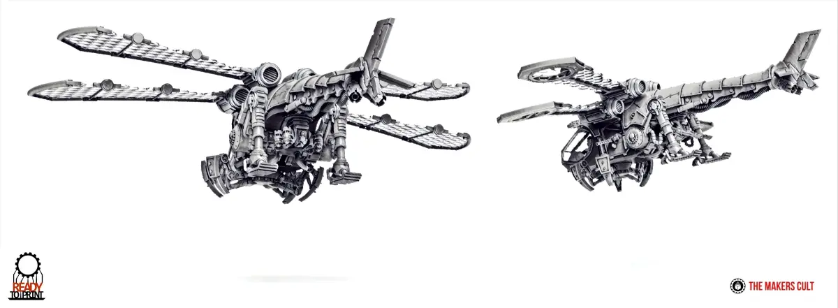 This multi-part kit contains all you need to build a set of flyer vehicles for the Dark Techno army.