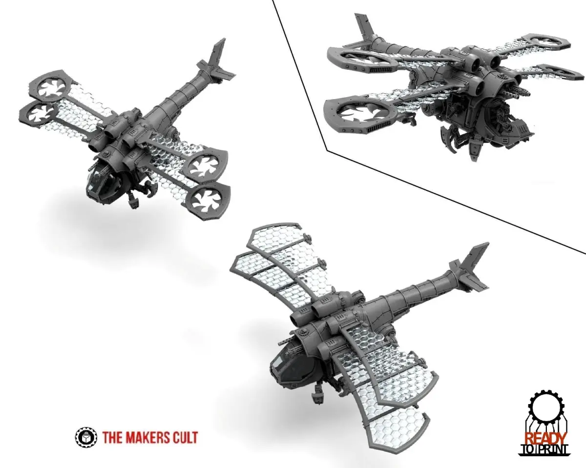 - 2 different wing styles (some parts are shown in clear on images, but can of course be printed in solid colours