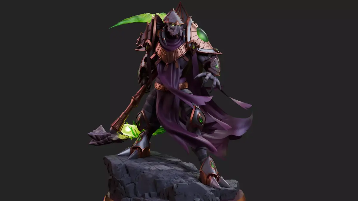 3d Print model of Starcraft 2 Protoss unit The Dark Templars . Preview images includes CG images and real prototype statue images mixed in. Part calls-out at the end. Sample printed with Anycubic Mono X, base with Anycubic Mega Zero and painted.