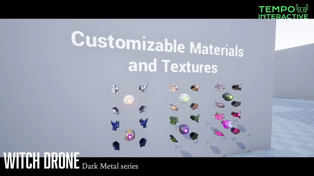 PART OF THE DARK METAL SERIESThey've been waiting for you. Step into the Shadows.The Dark Counterpart of the Drone Pack 3.Twisted. Corrupted.Embrace the shadows by giving your Witch Drone a Unique Look with our customizable material instance.