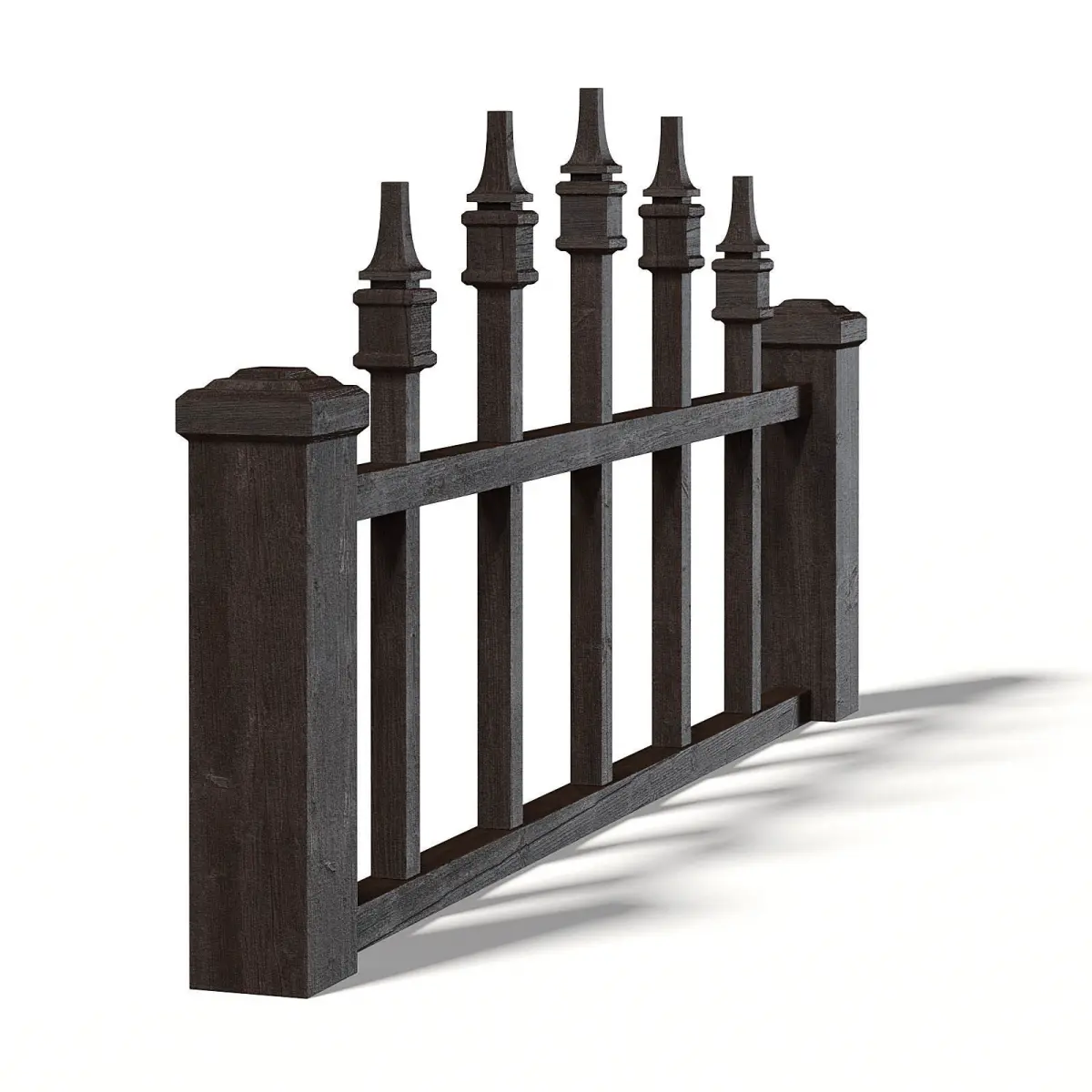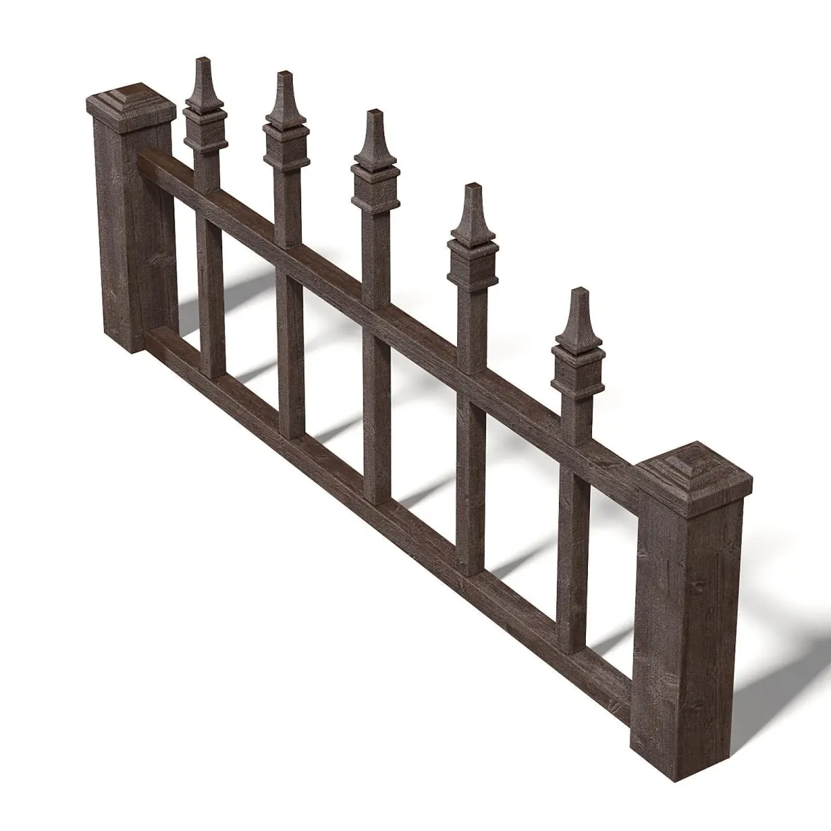 Low fence 3d model made of dark wood. Compatible with 3ds max 2010 (V-Ray, Mental Ray, Corona) or higher, Cinema 4D R15 (V-Ray, Advanced Renderer), FBX, OBJ and Unreal Engine.