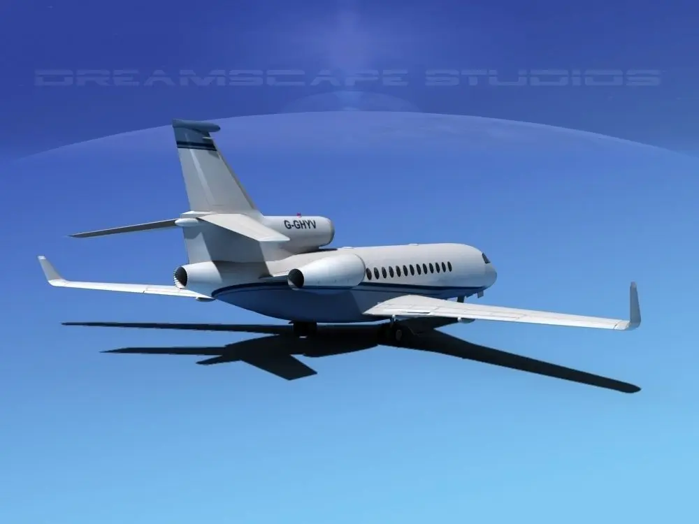 This high poly model is build very near to scale and is within a couple of percent of the actual dimensions. It has a detailed exterior including radio antennas and pitot tubes. Landing gear have been finished with a moderate amount of detail too. The model is fully textured and comes with all materials and textures. It has a cylindrical fuselage map eliminating most material pinch. In addition this model comes with animateable ailerons, inboard flaps, outboard flaps, elevators, rudder, landing gear, landing gear doors and turbines in 1 and 3 engines. It also has the winglets on the wing tips like the newer models of the 7X. The model is available in several different formats.