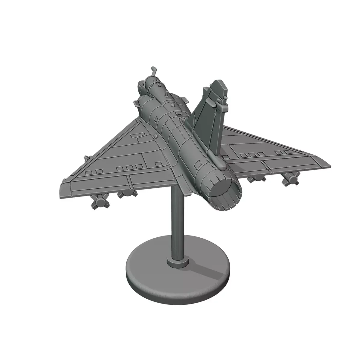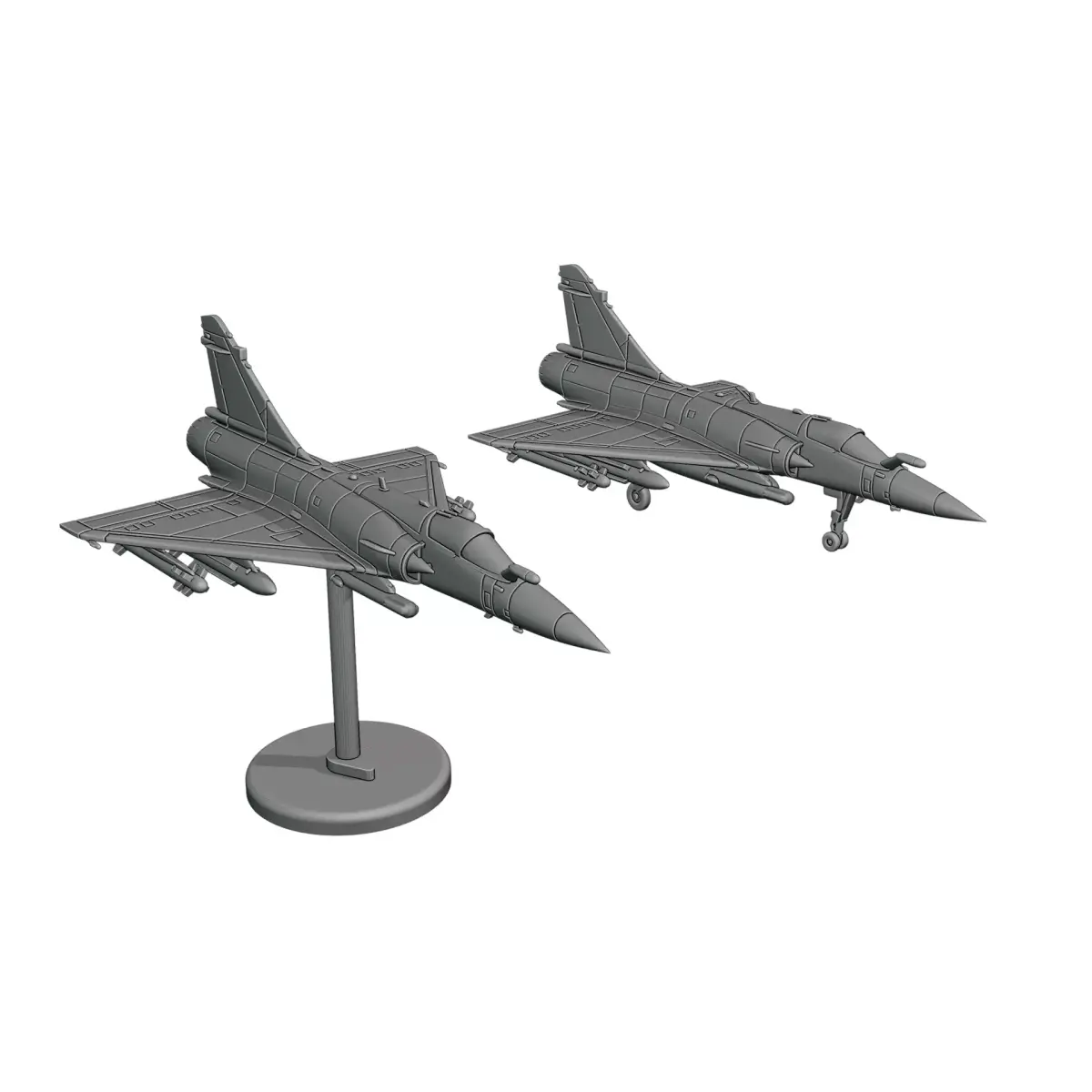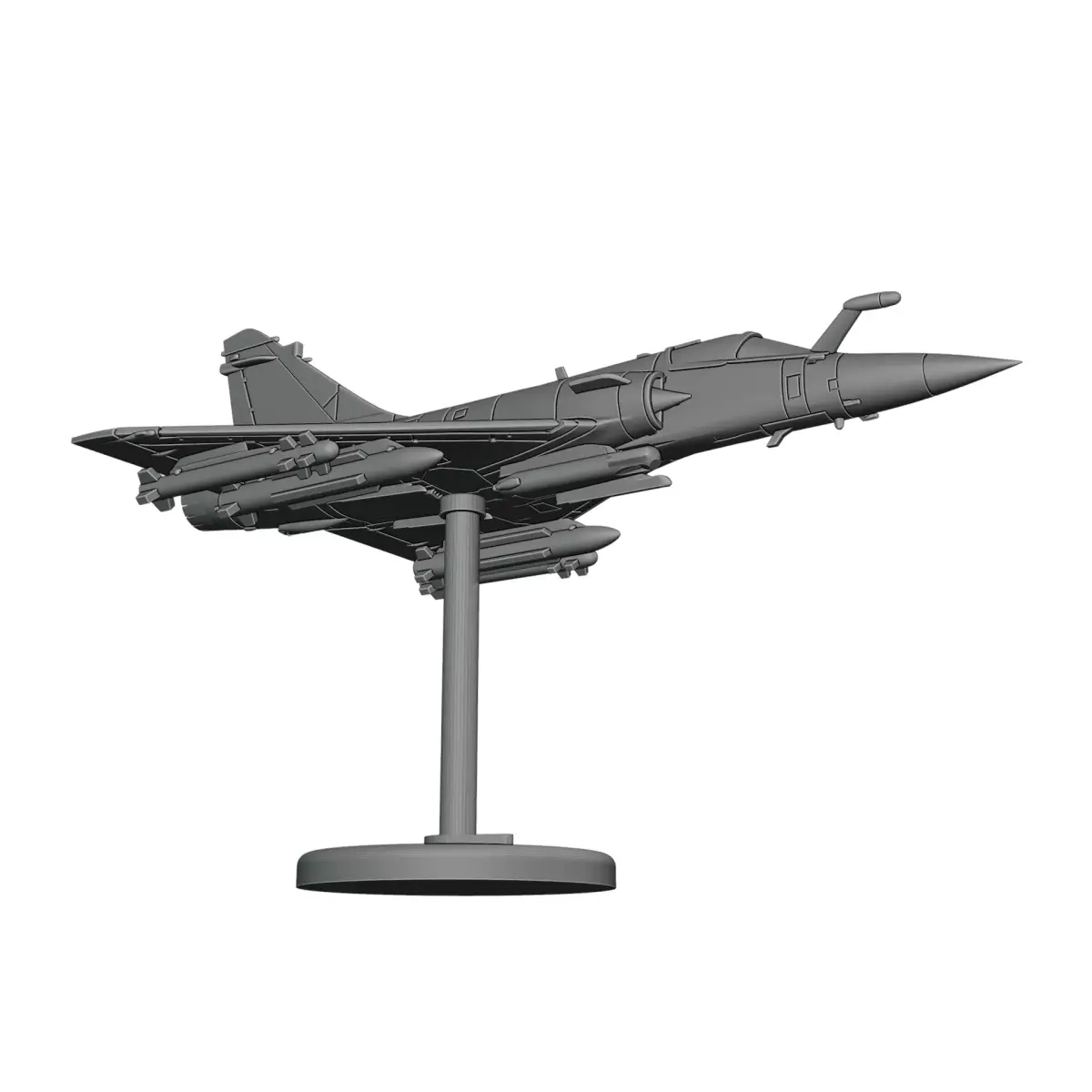 Dassault Mirage 2000 3D model of an aircraft, made on a scale of 1/100 to actual size, there are 2 versions, one on a stand, the other on wheels, each has a separate version for more comfortable printing.