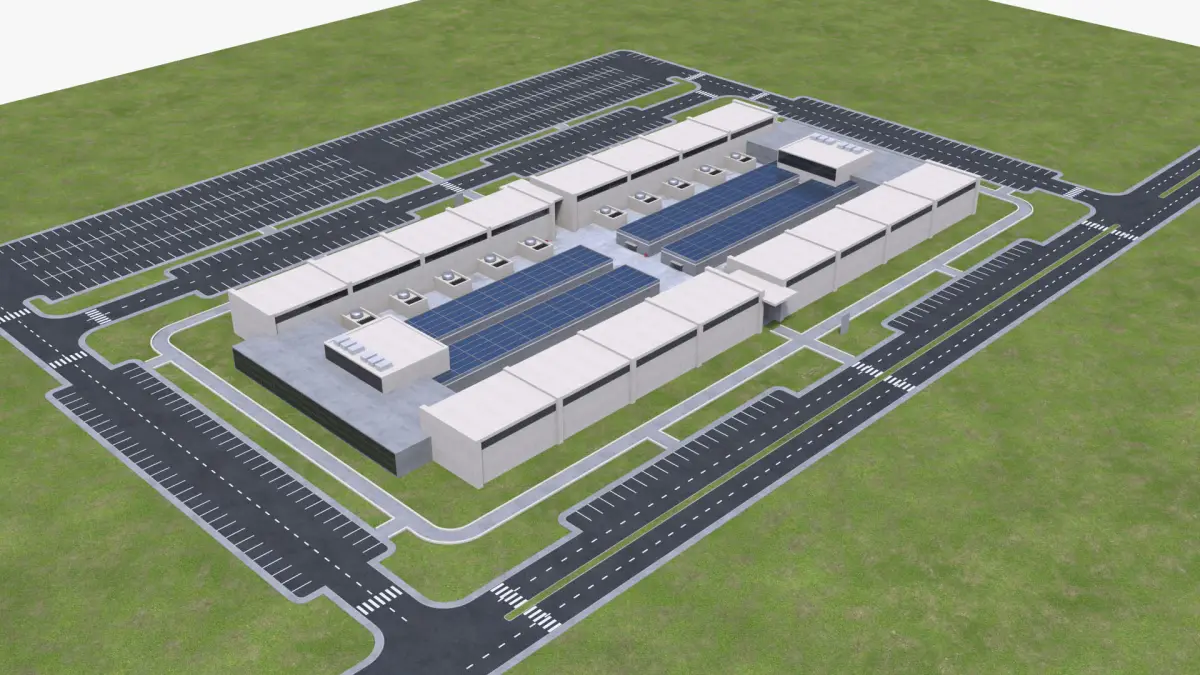 Data Center Exterior Building 3D ModelThe presented pictures are from the native file.All layers + objects are organized and named correctly.The native file includes: Vray Lights. Vray Materials. GI Not used for renders.