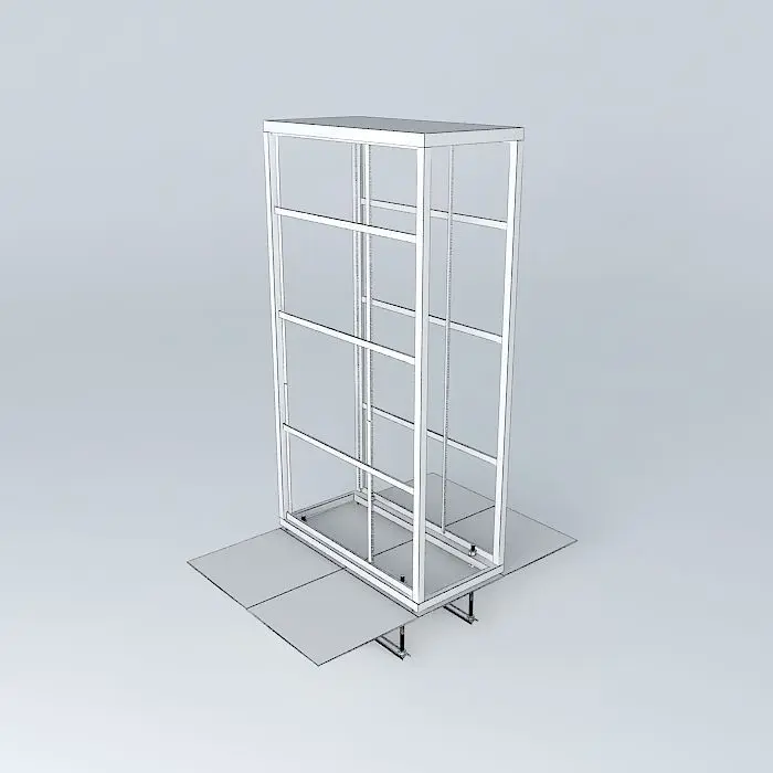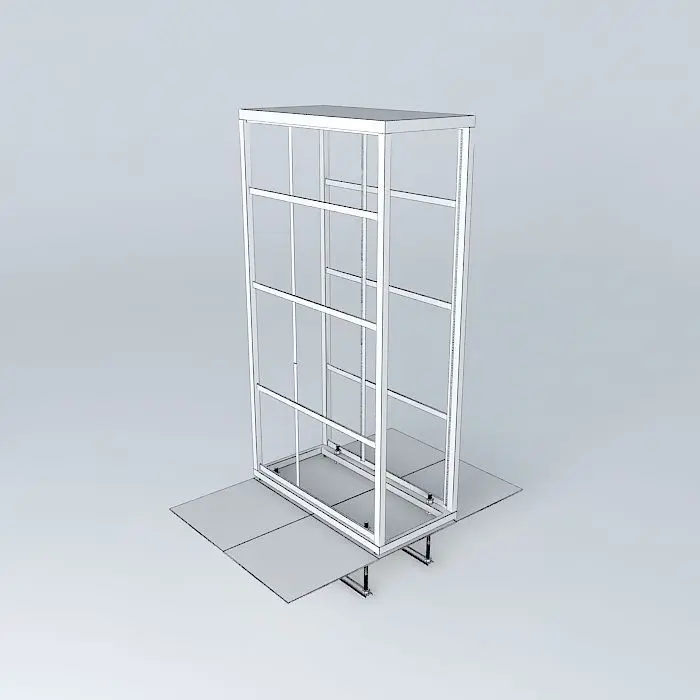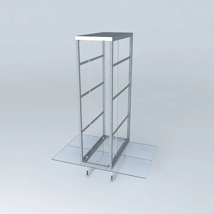 Sides removed. This one is to scale (the first model somehow got out of whack.. my error). Shows in detail the floor leveling legs and the way we do our seismic underfloor bracing. Not shown is the top of cabinet bracing as it is accomplished by building a ceiling over the cold isle side of each row (see data center drawing in collection).