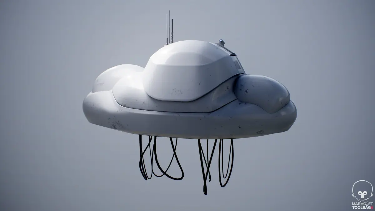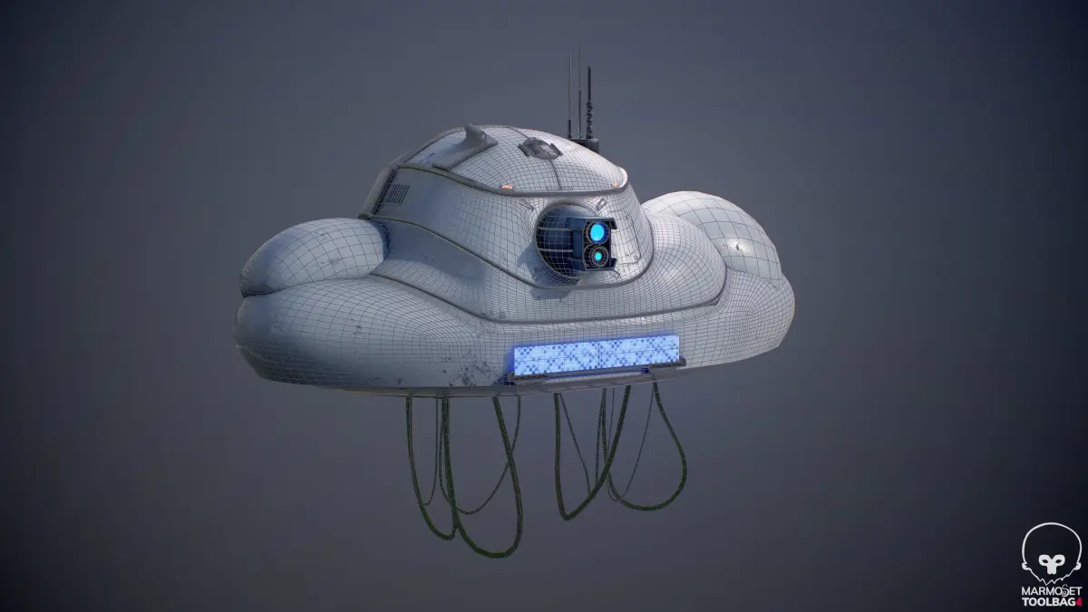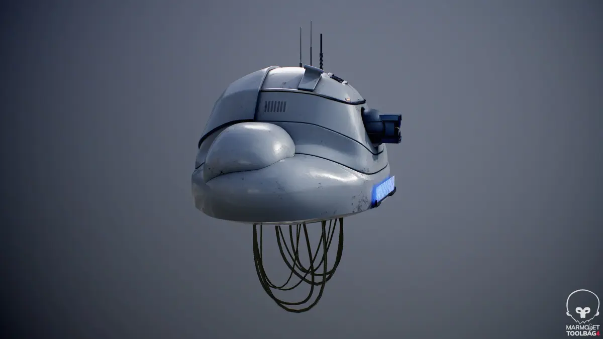 3D Model of Data Collector Drone for analyzing and collecting information from different devices, model has simple animation of spherical scanner, it's can be suitable for various cyberpunk style scenes as environment element.