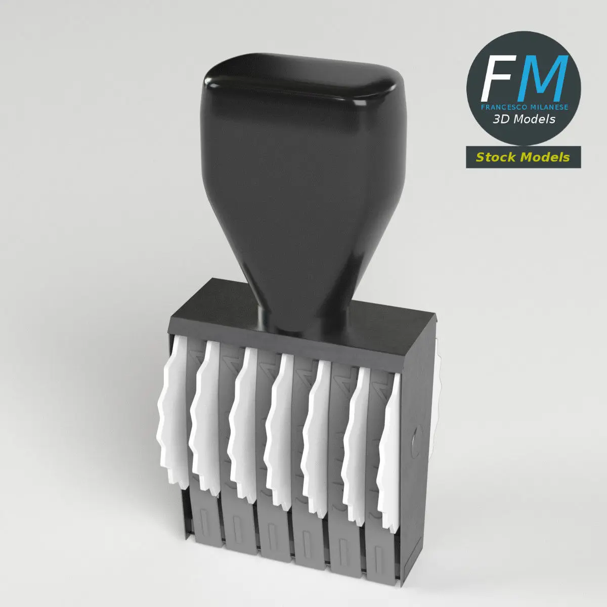 Dater stamp 3D Model. Production-ready 3D Model, with PBR materials, textures, non overlapping UV Layout map provided in the package.