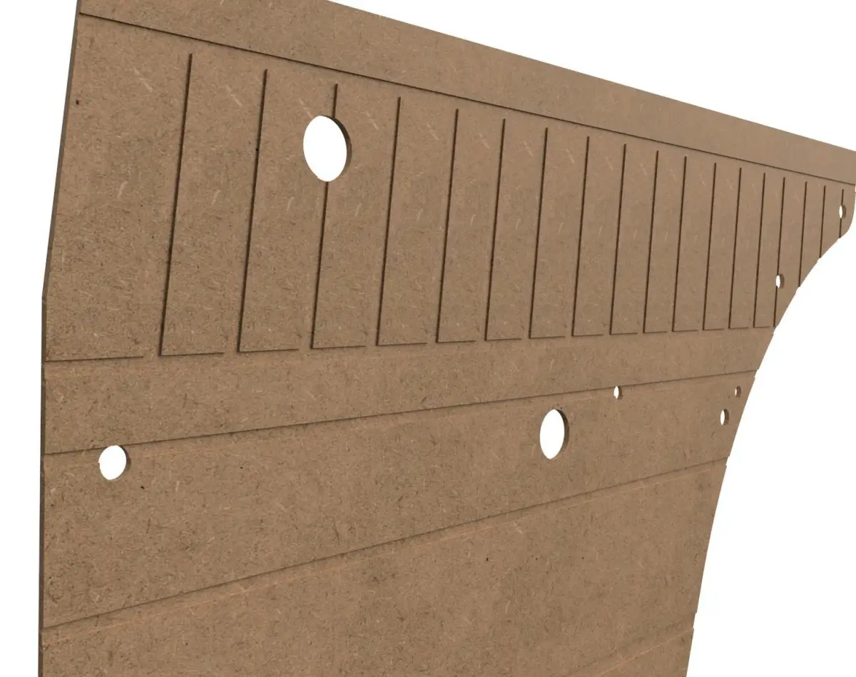 Datsun 510 4door door panel backing - ready to cut DXF files. available in 2 part cnc layer or vector engraving file. Cut from 4mm ply or mdf and then upholster. Drawn to scale