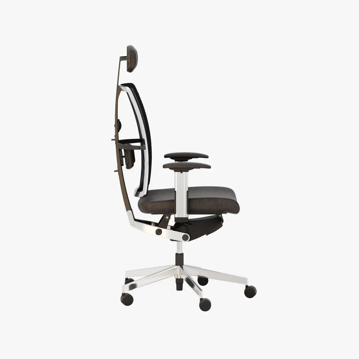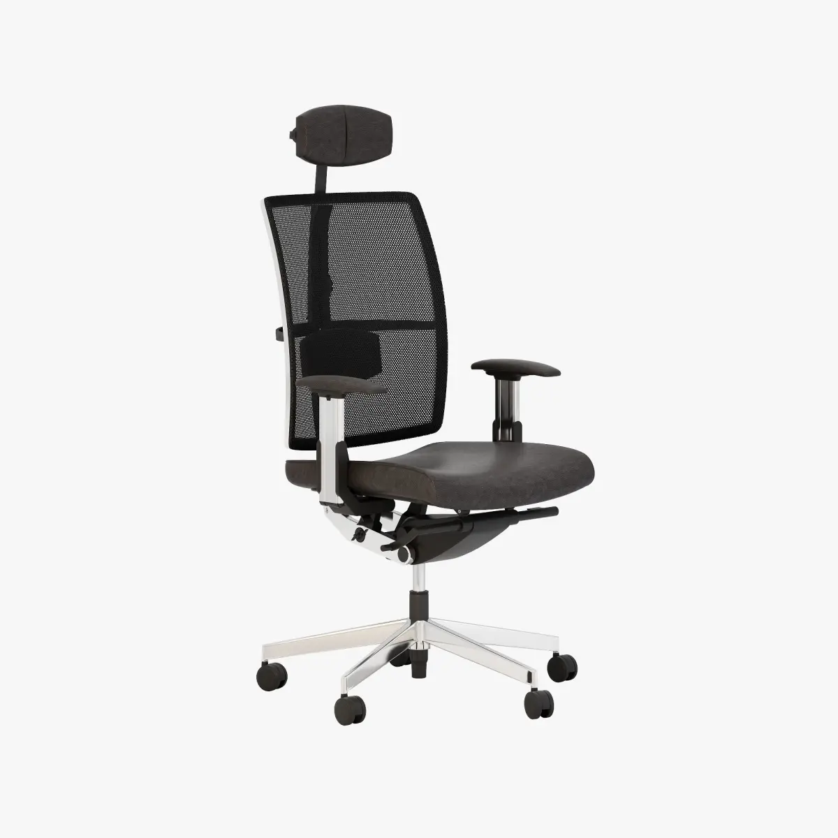Highway is a stylish and practical seating choice that provides a high level of craftsmanship to enhance any environment through its polished aluminum frame with either a mesh or upholstered back panel or fully upholstered back with no outer frame. Features include a contoured seat with a waterfall front edge that delivers comfort for those seated over time. This chair is also equipped with a special mechanism for the swivel chair that includes a knee tilt mechanism with an easy access side tension adjustment that will allow the user's feet to remain firmly on the floor when reclining, and without placing added pressure on the thighs. The backrest comes in many different mesh colors or your choice of optional upholstery.