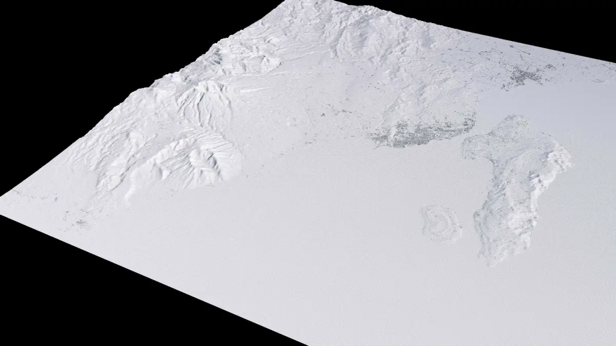 Originally created in Houdini 19. Final images rendered in Houdini. Data source is ASTER GDEM V3, ASTER WATER V1, Open Streep Maps 2022, Copernicus Sentinel 2016.