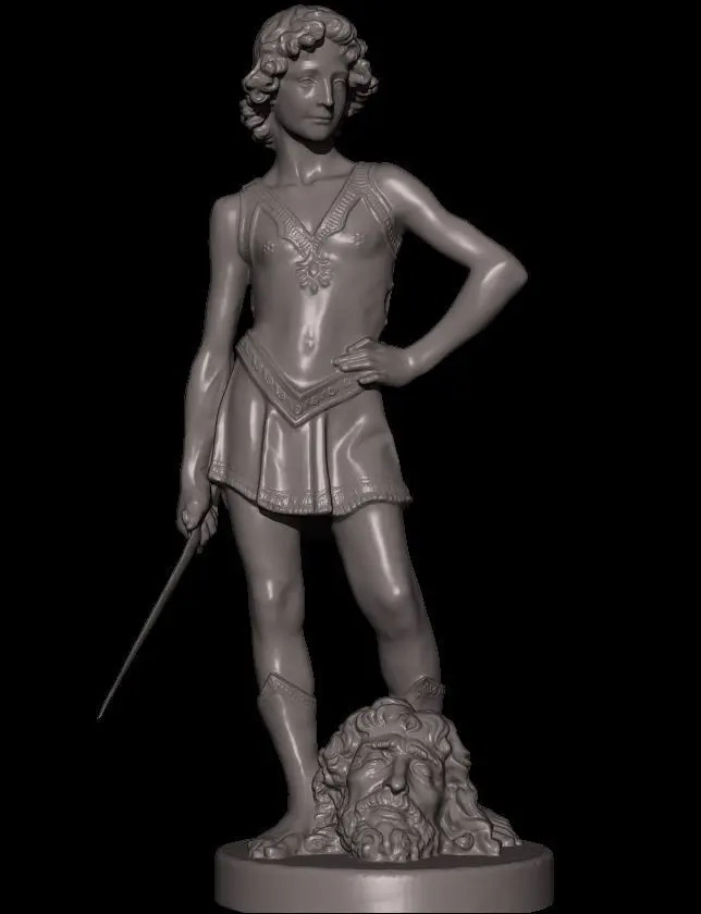 Il David aveva come illustre precedente quello bronzeo di Donatello (1440 circa), al quale l'artista si ispir distaccandosi per dal modello anche sostanzialmente. La figura dell'eroe biblico non pi nuda, ma abbigliata come un adolescente paggio cortese, dall'idealizzata e goticizzante bellezza che rimanda piuttosto alle opere di Lorenzo Ghiberti.