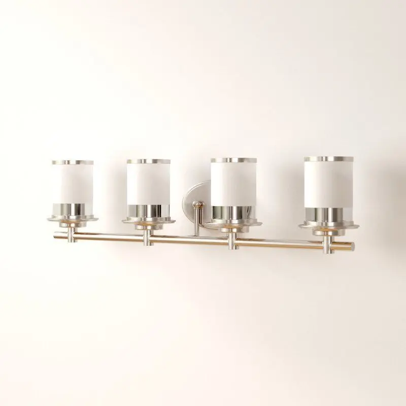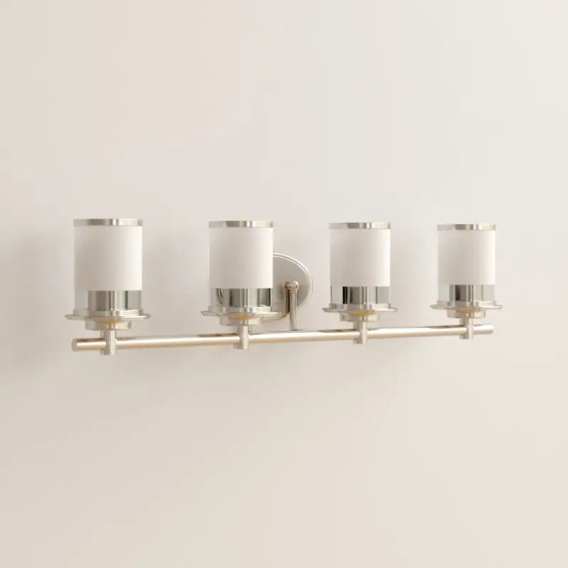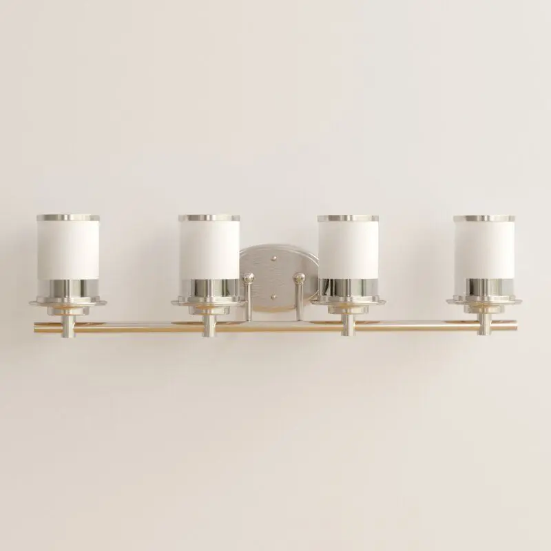 - Brighten your bathroom or powder room in sleek, traditional style with this 4-light vanity light. It's made from metal and features an oval backplate with four arched arms that support the frosted glass cylindrical shades. Inside sits a 100W bulb (not included) that washes your space in a bright light.