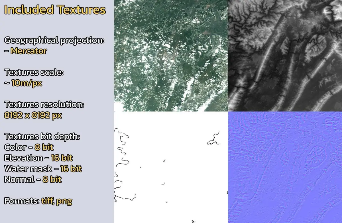 - Textures resolution: ~10m/px