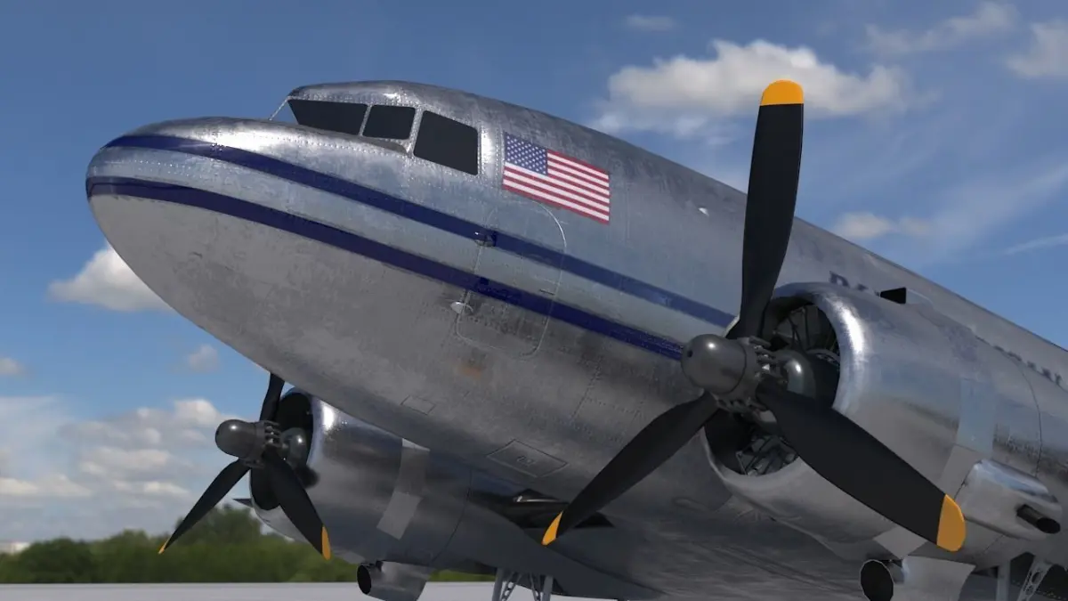 Pan American Airways System DC-3 (early 50's livery)High detail, low poly, rigged, fully UVW unwrapped model from accurate blueprints. Most detail comes from texturing.